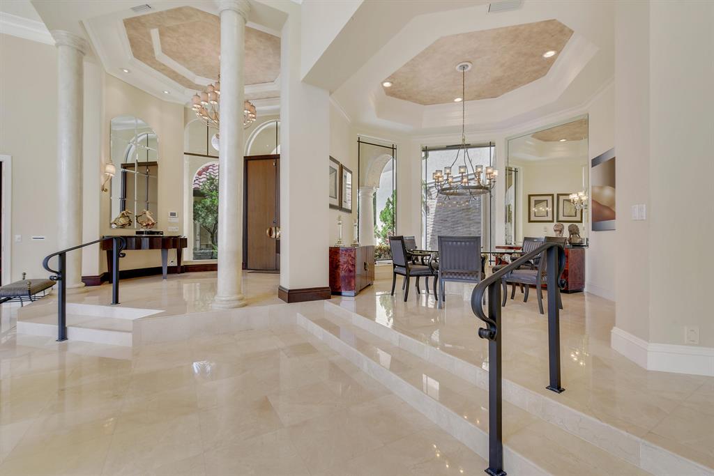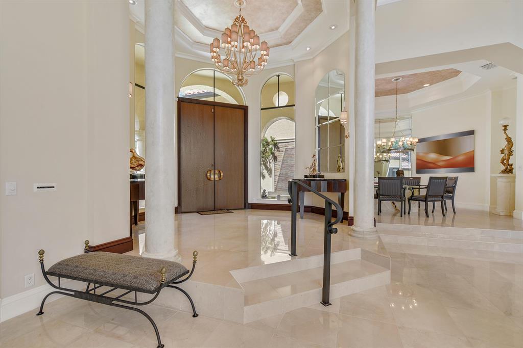 This prestigious residence features 6 bedrooms, 7 1/2 baths and over 6,000 square feet of light filled air-conditioned living space. The dramatic bougainvillea covered gated courtyard entrance opens to grand formal living room with fireplace, formal dining room and rich wood paneled office. A custom contemporary style gourmet kitchen overlooks the breakfast area and family room. The first floor master wing includes a grand master suite with luxurious his and her baths and generous closets. Two separate bedroom wings create privacy for family and guest alike.The second floor features a VIP guest suite and a home theater. The lushly landscaped property features resort style pool and waterfall, covered loggia and pristine lake views. This information is herein is deemed reliable and subject