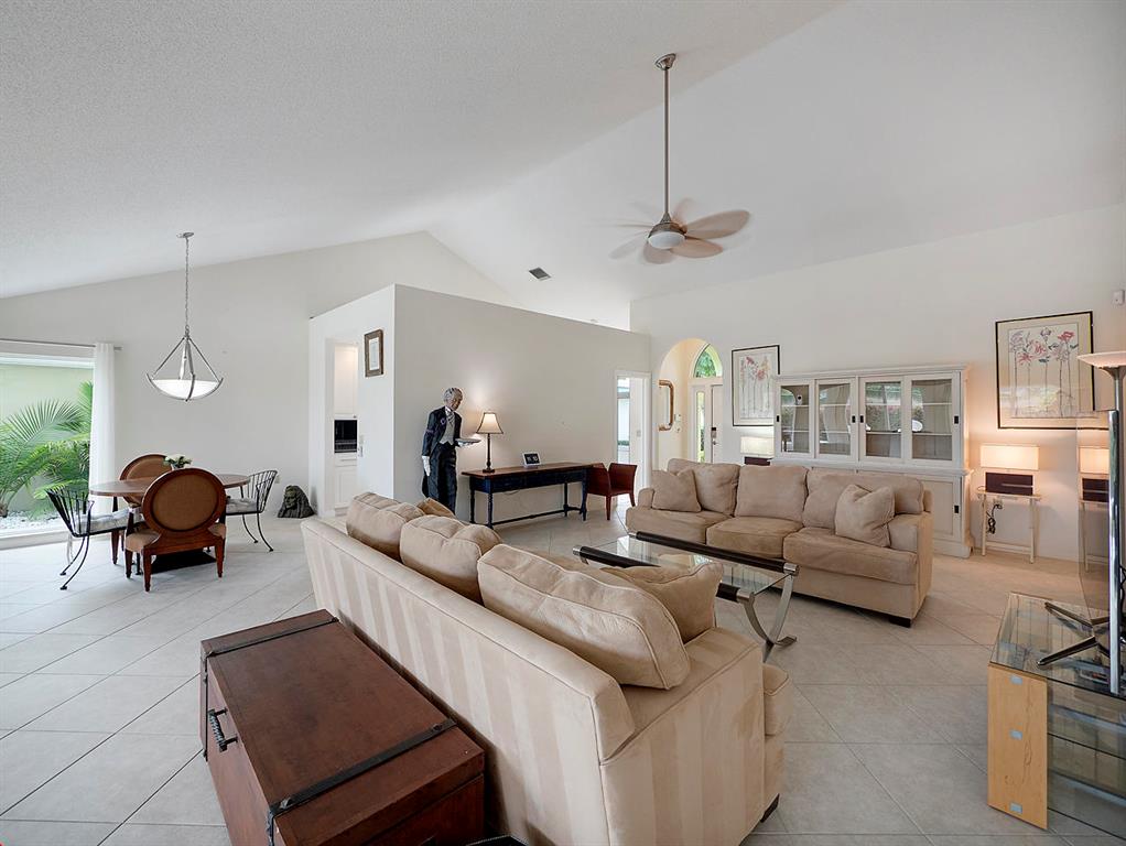 NO MANDATORY MEMBERSHIP. Enjoy the country club lifestyle without the dues! Located in the gated Bear Island community, this golf course looks over the 2nd hole of the Links Course. Roof replaced in 2007. All impact windows and doors. This Saratoga model is the larger model in Bear Island and is 2,357 s.f. under air. 3/2 with split floor plan features vaulted ceilings, ceramic tile set on the diagonal throughout the living area. Updated kitchen with granite and stainless appliances. The master suite has a walk-in closet, updated ensuite bath with double sink vanity, tub and separate shower. Guest bath has been nicely updated. FULL IMPACT windows and doors, including garage door. ADT alarm system, central vacuum system, dedicated laundry room and 2-car garage. HOA fees include