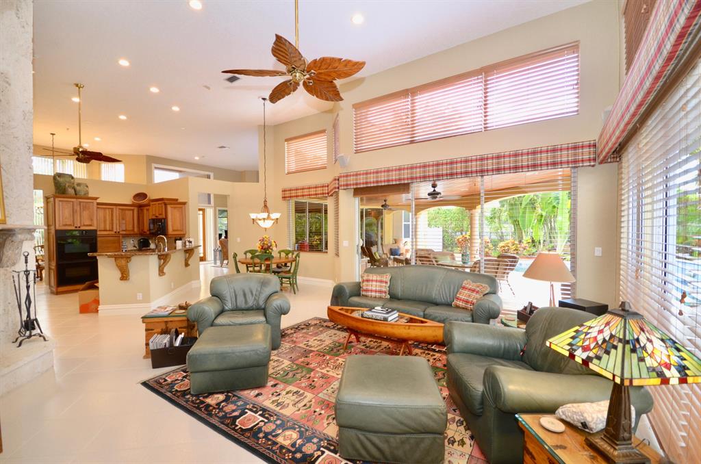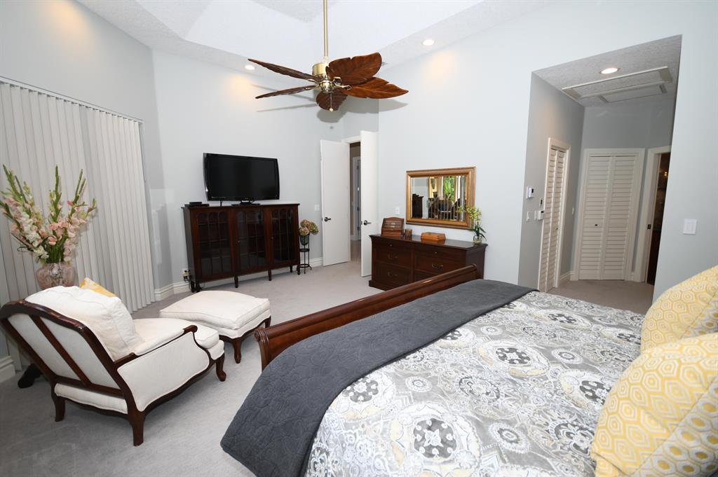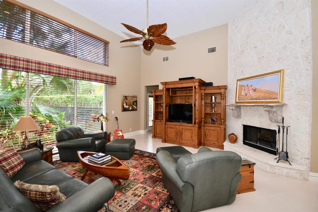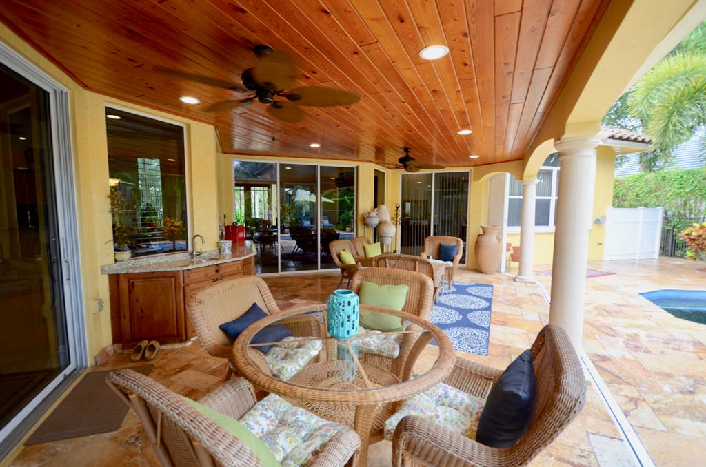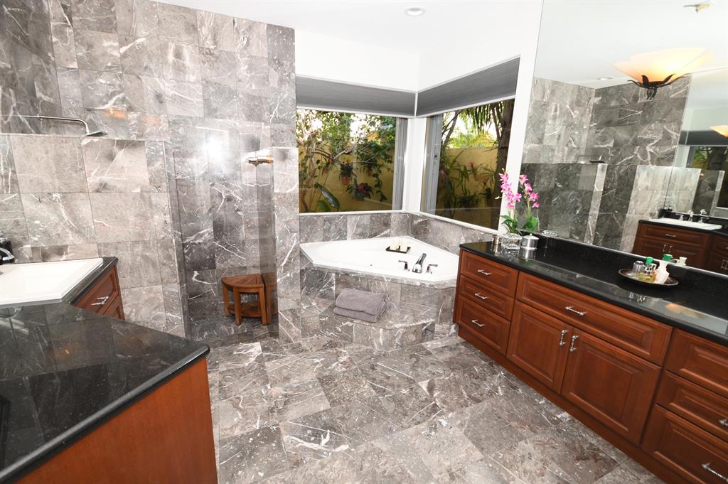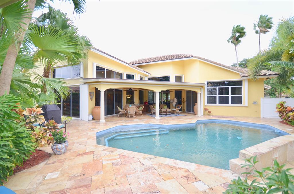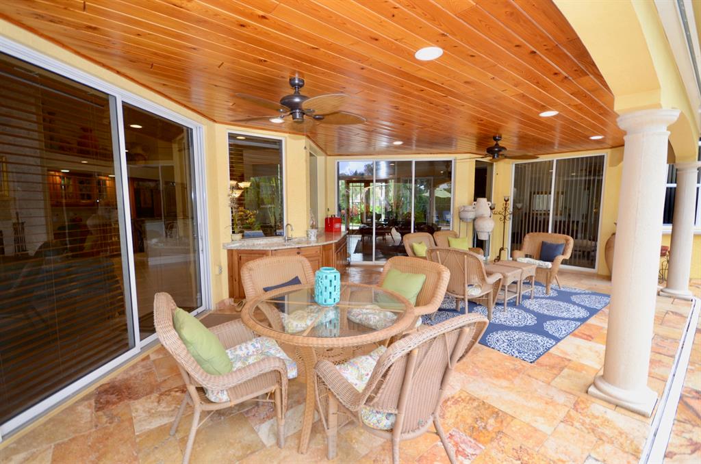Palm Island - 5 bedroom split plan PLUS exercise room/playroom (6 rooms total); 3.5 bathrooms. New roof 2017.Both A/C systems replaced in last 3 yrs; All ducting replacedHigh ceilings; Views of pool and patio area from all main living areasLarge master with seating area, his and her closets with built-ins, separate linen closet; Remodeled master bath with over-sized marble shower, whirlpool tub, granite counters 2 additional full bathrooms plus powder room - all recently remodeled Updated kitchen with solid wood updated cabinets, slide out drawers in lower cabinets, pantry, granite counters, double oven, cook-top, built-in deskLarge breakfast area and kitchen open to oversized family room with wood burning fireplace with dramatic cut coral stone wall;