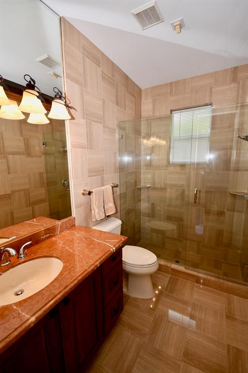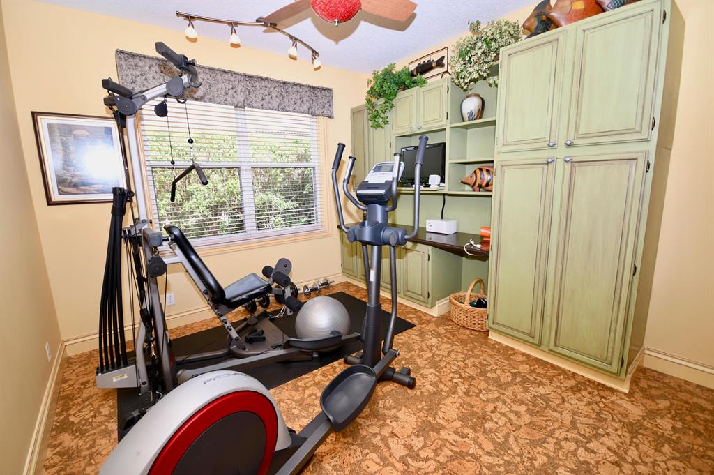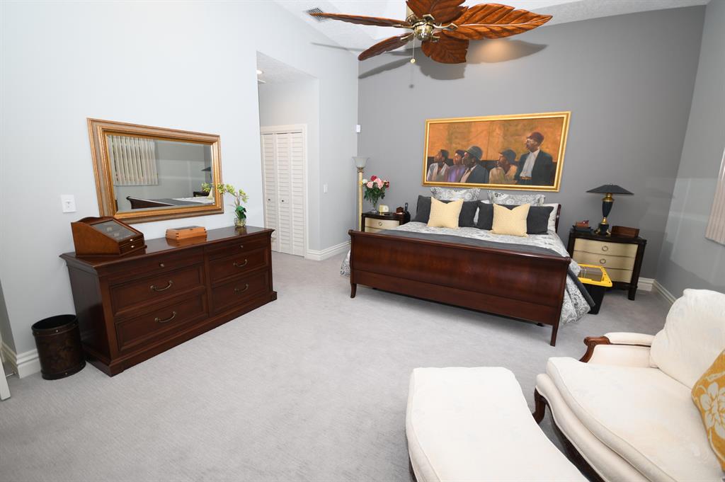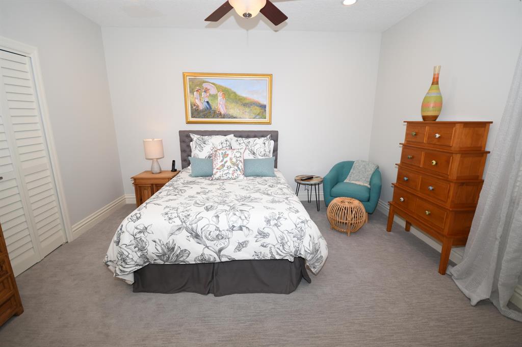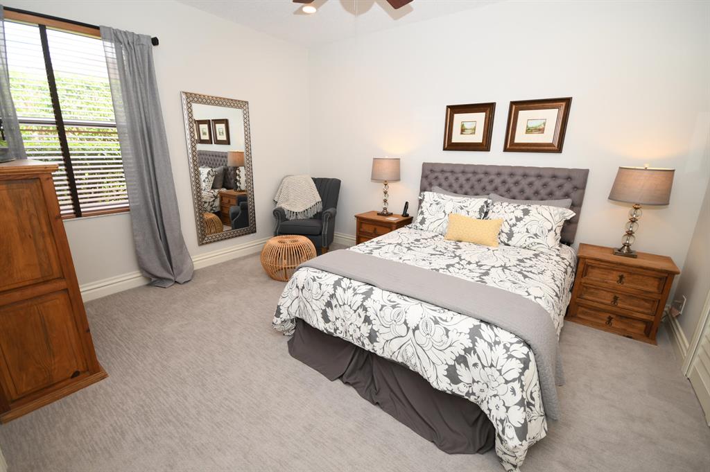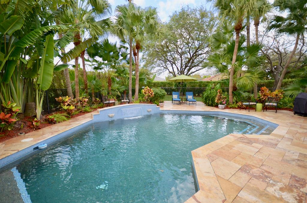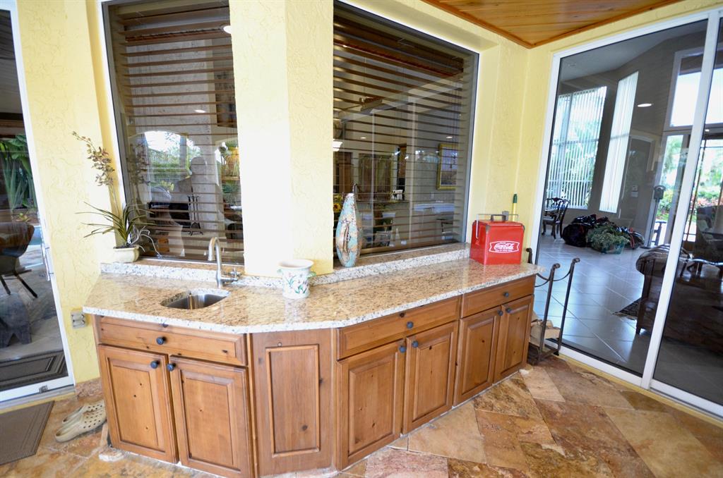 Palm Island - 5 bedroom split plan PLUS exercise room/playroom (6 rooms total); 3.5 bathrooms. New roof 2017.Both A/C systems replaced in last 3 yrs; All ducting replacedHigh ceilings; Views of pool and patio area from all main living areasLarge master with seating area, his and her closets with built-ins, separate linen closet; Remodeled master bath with over-sized marble shower, whirlpool tub, granite counters 2 additional full bathrooms plus powder room - all recently remodeled Updated kitchen with solid wood updated cabinets, slide out drawers in lower cabinets, pantry, granite counters, double oven, cook-top, built-in deskLarge breakfast area and kitchen open to oversized family room with wood burning fireplace with dramatic cut coral stone wall;