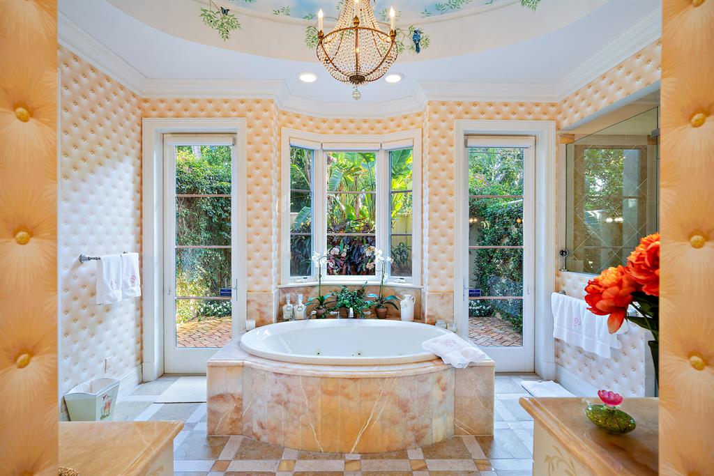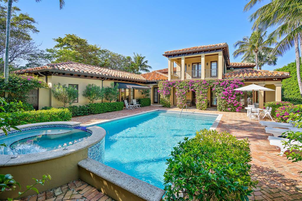 Capture the sea breezes from this exceptional Mediterranean villa located on the desirable ocean block of Brazilian Avenue. This well-appointed meticulously maintained home has an intuitive layout with generous room sizes and an ideal floor plan. Highlights include inviting entertainment spaces, a large first floor master bedroom suite with double baths and closets, library/den, media/play room, office and an eat in kitchen with butler's pantry and French doors that open to the lanai and pool from all main rooms. The property is fully hedged for privacy with lushly landscaped grounds and has a sun drenched serene backyard with large pool and spa. Situated just four houses from the beach yet right around the corner from Palm Beach's finest shops, restaurants, galleries and clubs.