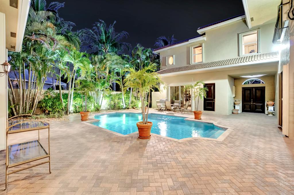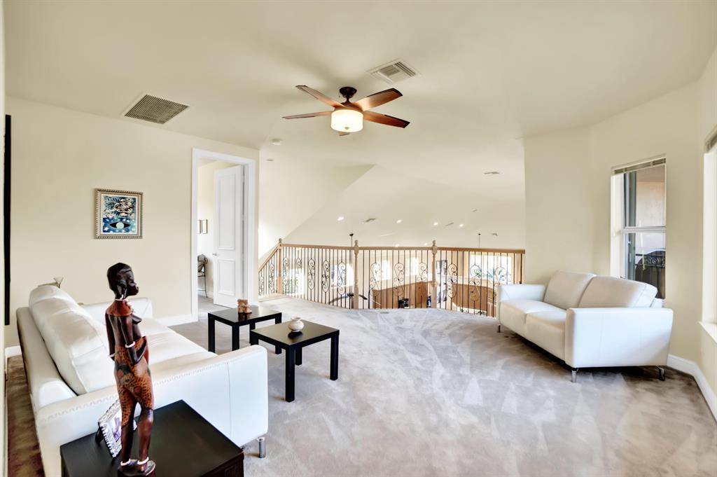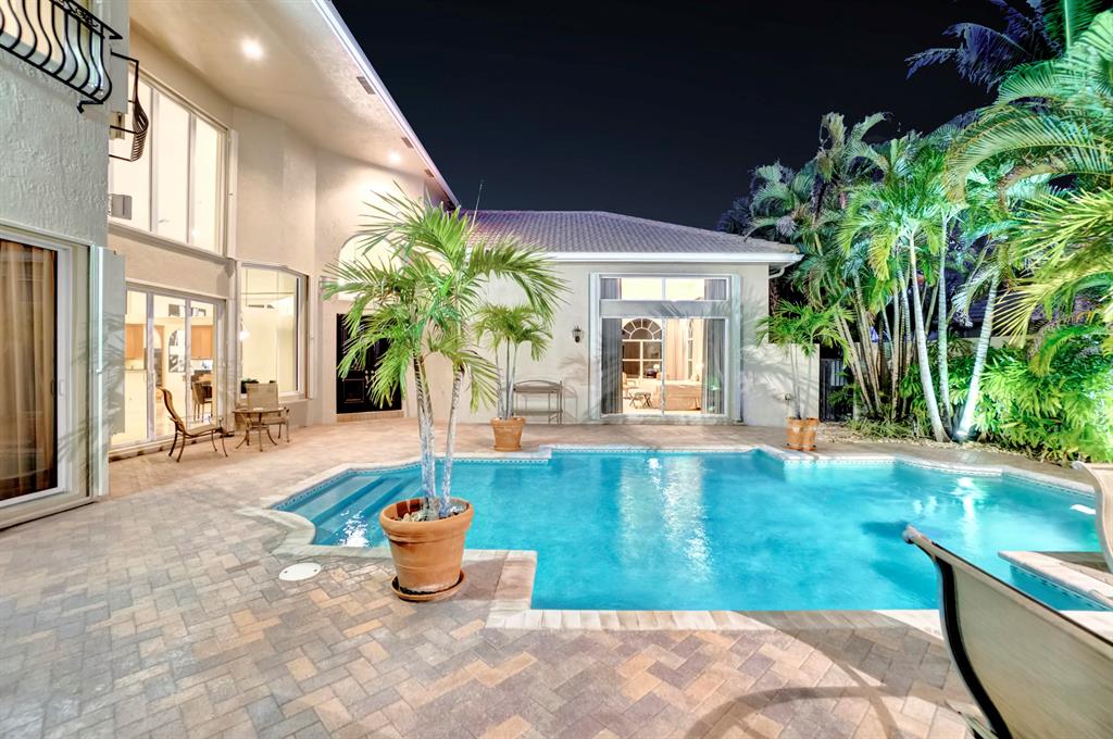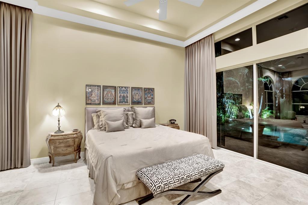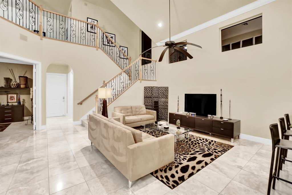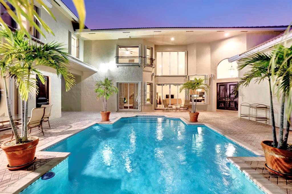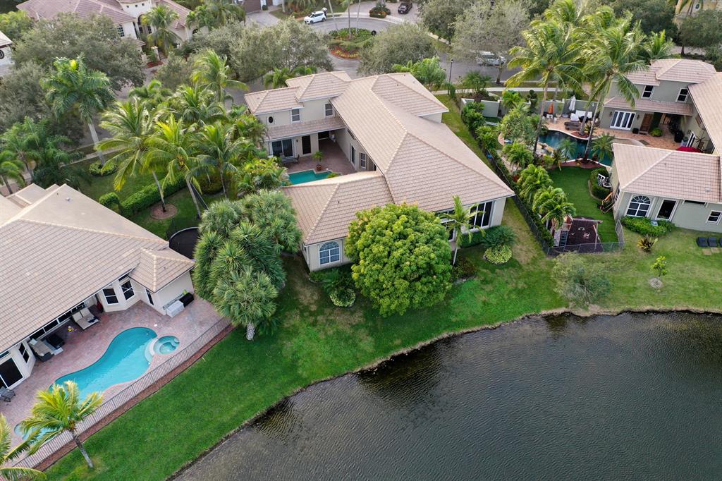 Stunning Courtyard Estate Home with Guest Apartment. From the moment you enter into the Foyer your eyes are drawn through the Formal Living Room to the Lake Fountain View! Home features 5 Bedrooms + Office & upstairs Loft/4.5 Baths/3 Car Garage. Downstairs Master Bedroom Suite is also surrounded by Water Views whether it be the Lake or the extended Pool Courtyard. Master Suite includes California Walk-in Closets, Black-out Curtains, and a well appointed Master Bathroom. Some of the Highlighted Features that will capture your eyes: Cathedral/Vaulted Ceilings, Crown Molding, Gourmet Kitchen with Open Breakfast Counter to Family Room, Marble Flooring, Cast Iron Stair-rail, Full House Propane Generator, 2007 Roof, 3 Zone AC in 2016, Pool Heater, Impact Windows, A+ Schools and so much more!