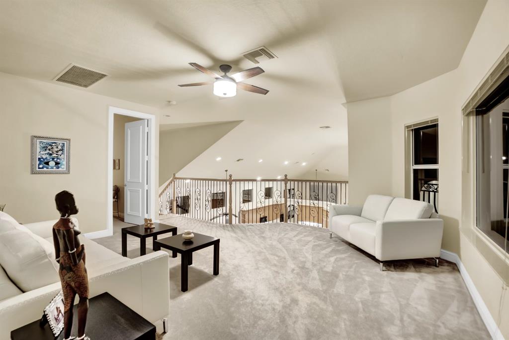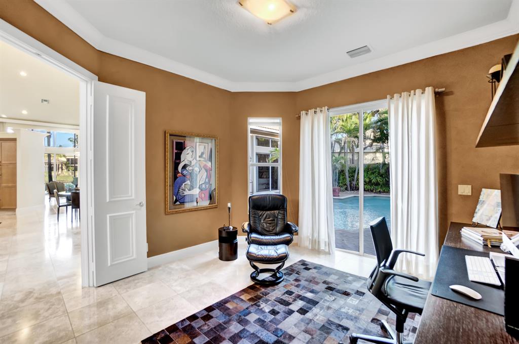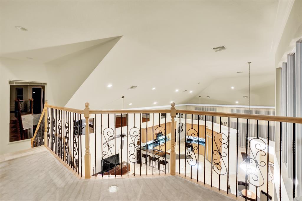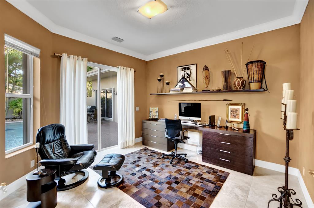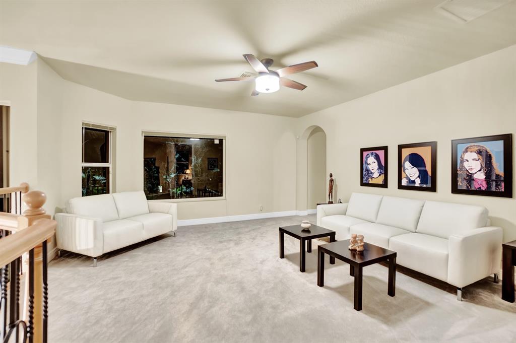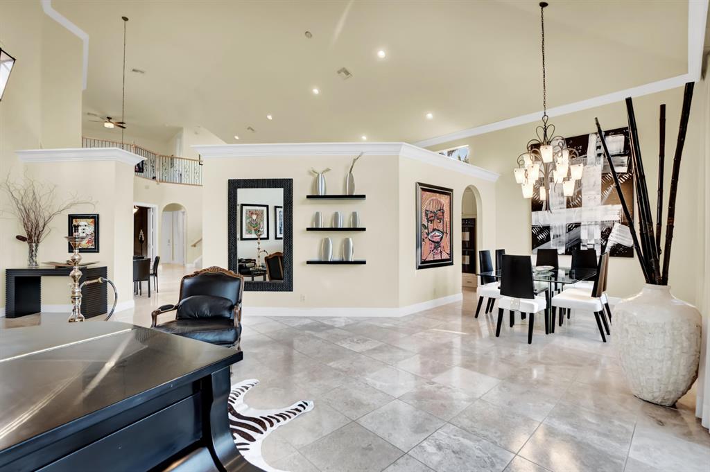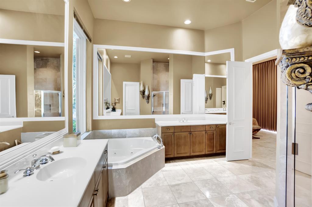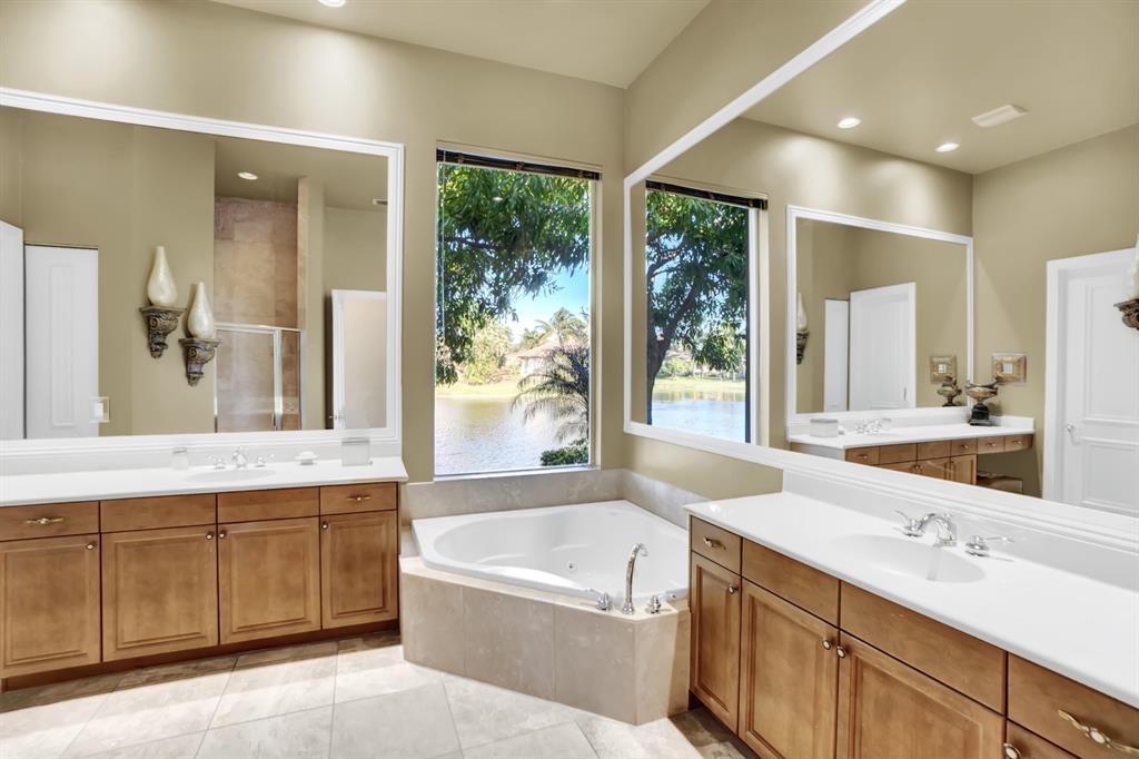 Stunning Courtyard Estate Home with Guest Apartment. From the moment you enter into the Foyer your eyes are drawn through the Formal Living Room to the Lake Fountain View! Home features 5 Bedrooms + Office & upstairs Loft/4.5 Baths/3 Car Garage. Downstairs Master Bedroom Suite is also surrounded by Water Views whether it be the Lake or the extended Pool Courtyard. Master Suite includes California Walk-in Closets, Black-out Curtains, and a well appointed Master Bathroom. Some of the Highlighted Features that will capture your eyes: Cathedral/Vaulted Ceilings, Crown Molding, Gourmet Kitchen with Open Breakfast Counter to Family Room, Marble Flooring, Cast Iron Stair-rail, Full House Propane Generator, 2007 Roof, 3 Zone AC in 2016, Pool Heater, Impact Windows, A+ Schools and so much more!