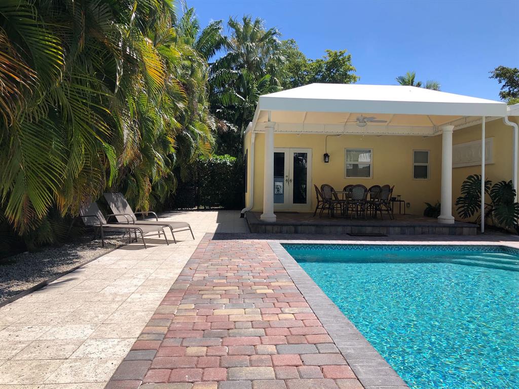 Close your eyes and you are in Palm Beach...Beautifully renovated Flamingo Park Bungalow, and a detached 1/1 separate house with it's own address and entrance. The main house was completely redesigned with raised ceilings. BOTH COMPLETELY UPDATED - new roofs, plumbing, electrical, appliances - new walnut hardwood flooring in main home and terra cotta tile and hardwood in the guest cottage. NEW kitchens and NEW appliances. Washer/Dryer in each home. Lush landscaping and an outdoor cabana overlooking the pool and fountain wall make for a fabulous entertaining area. All IMPACT windows in BOTH homes. New paver driveways and courtyards. NEW baths with Toto toilets, marble and upscale tile - best quality plumbing fixtures. A perfect vacation rental opportunity, or live in one and rent the other.