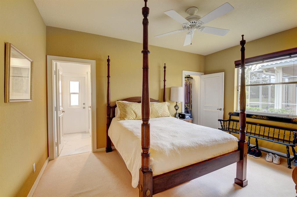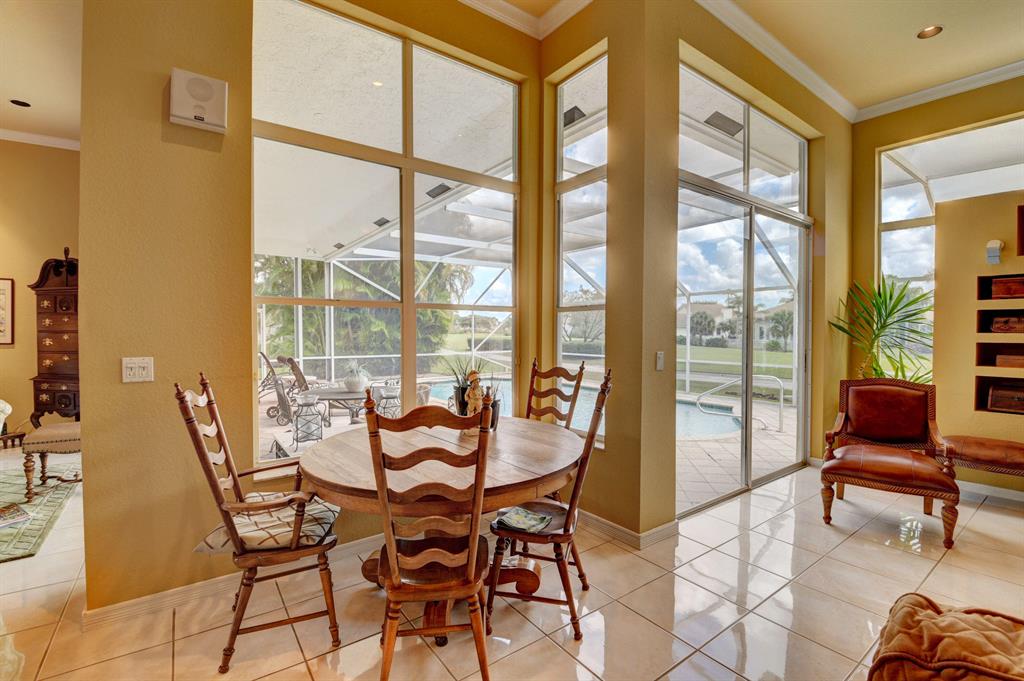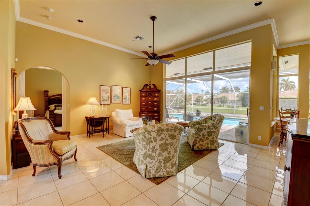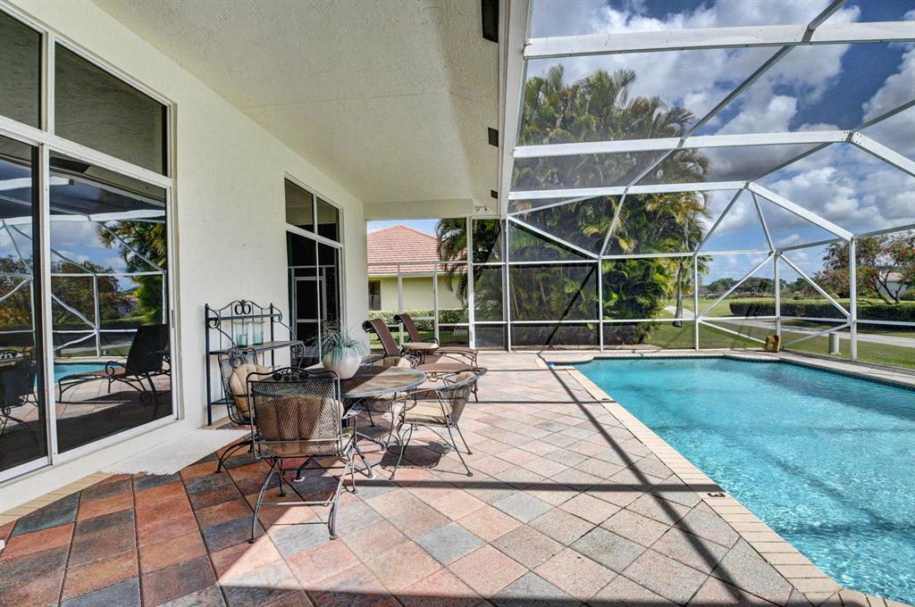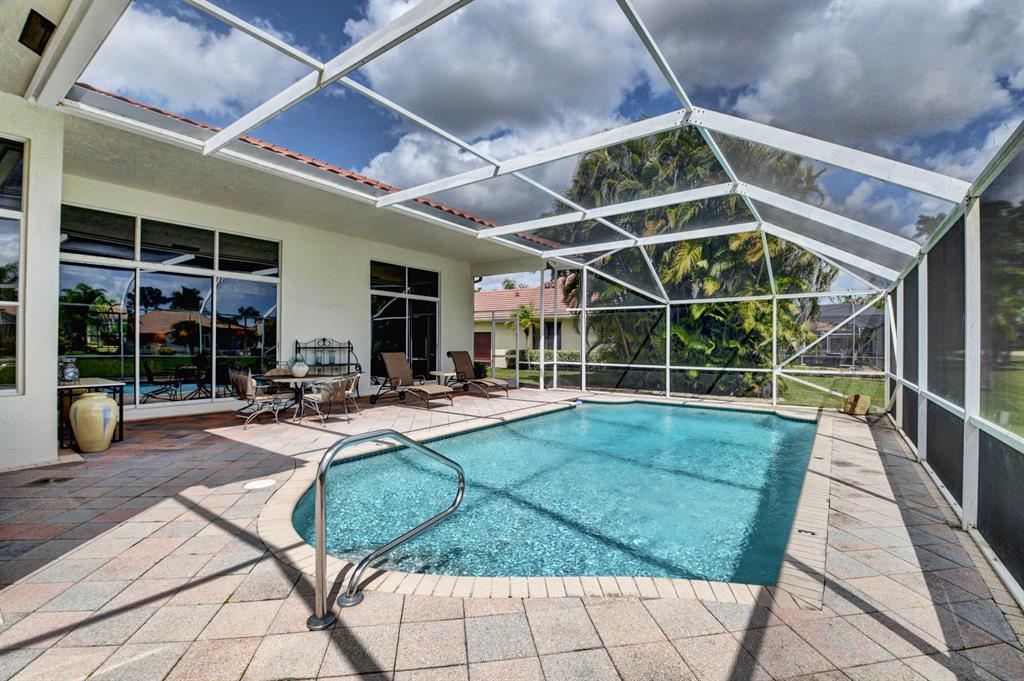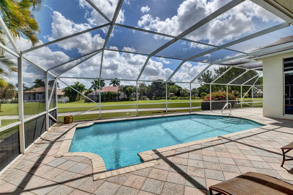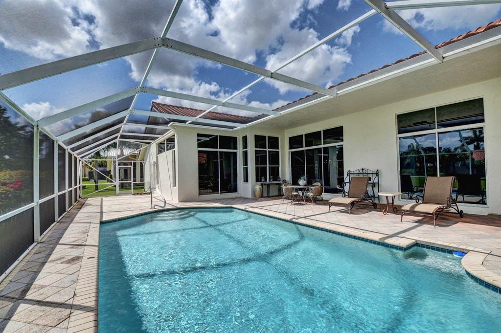GOLF LEVEL MEMBERSHIP & EQUITY REQUIRED. Lovely, truly move-in ready custom home in Stonebridge Country Club. The exterior of the home is impressive with a decorative circular driveway, 2 bay garage plus golf cart garage, nicely landscaped rock gardens, freshly painted neutral tones, and a newer roof (2017, per PBC permits), two AC's replaced, one in 2014 and the other in 2016. Upon entering the home, you have perfect, unobstructed views to the screened lanai, pool, and golf course beyond. Neutral tile in living areas, kitchen and baths. Carpeted bedrooms provide softness on bare feet. Ample recessed lighting, crown mouldings throughout, ceiling fans, and traditional lighting and finishes make this home so easy to love! The renovated kitchen has light woodtone cabinets,(MORE)
