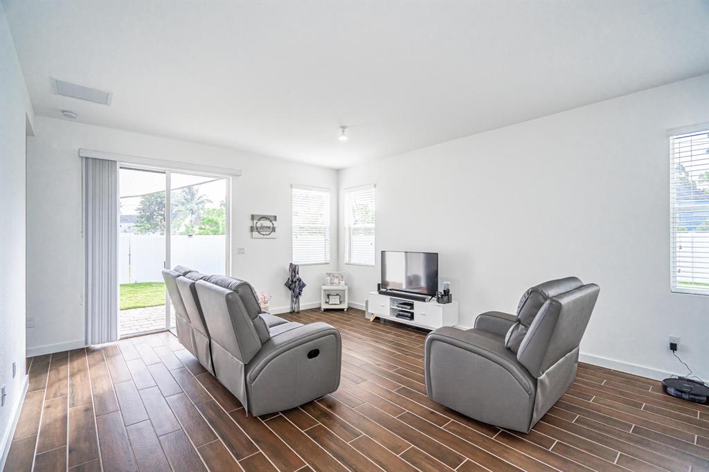 Located in the prestigious Ranchette Royale in the city of West Palm Beach. SMART HOME that offers 3 bedrooms and plus, 2 full bathrooms. Open concept kitchen stainless steel appliances, two car garage, great fence patio for BBQ . PETS FRIENDLY Close to I95 , Citi Place and Beaches.
