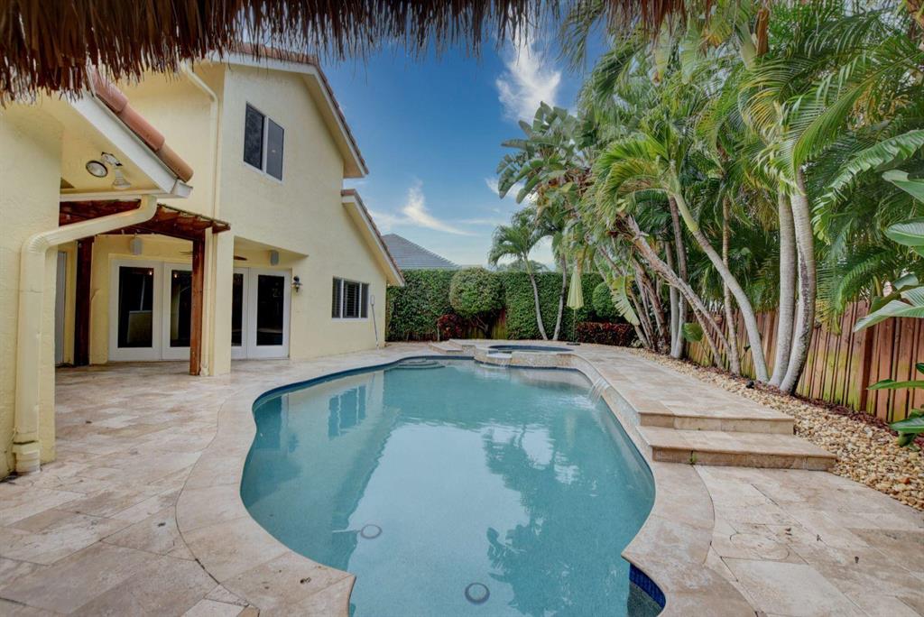 Totally upgraded and move-in ready with only the best of everything. Located in East Boca in the most desireable A RATED School Zone, Calusa, Boca Middle, and Boca High. No HOA!! Roof 11 years old, PGT Hurricane Impact Windows and Doors. Impact & insulated silent garage door. Miami Dade hurricane rated/all openings. Custom heated pool and spa with travertine marble deck. Huge Tike Hut and Covered Pergola. Freshly polished Saturnia marble floors. Custom wood and metal staircase.. Kitchen has quartz countertops and Kenmore Elite appliances. Master bedroom downstairs with 2 large bedrooms and loft upstairs. Custom garage with epoxy floors and gladiator wall stoarage. Top of the line Rheem Prestige 16 Seer dual zone AC 2011. Plantation Shutters and remote shades. Designer Landscaping.