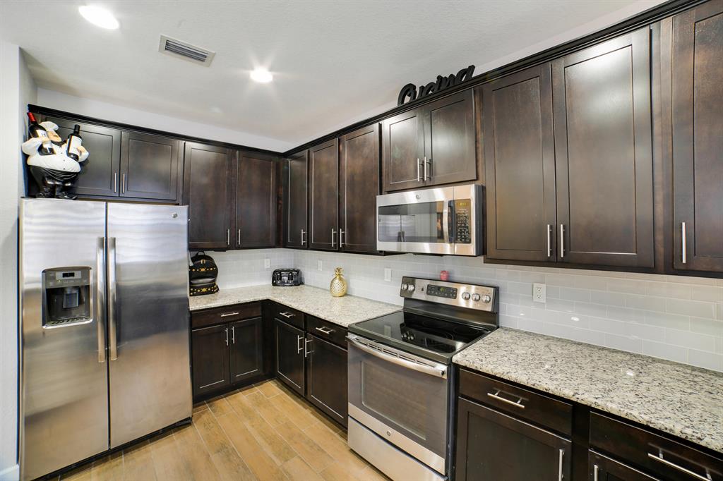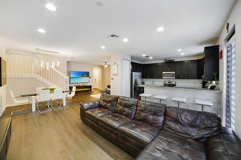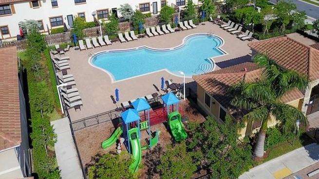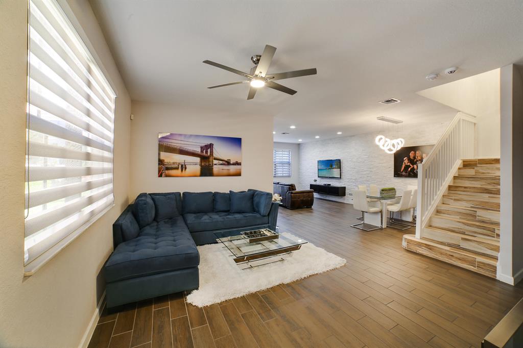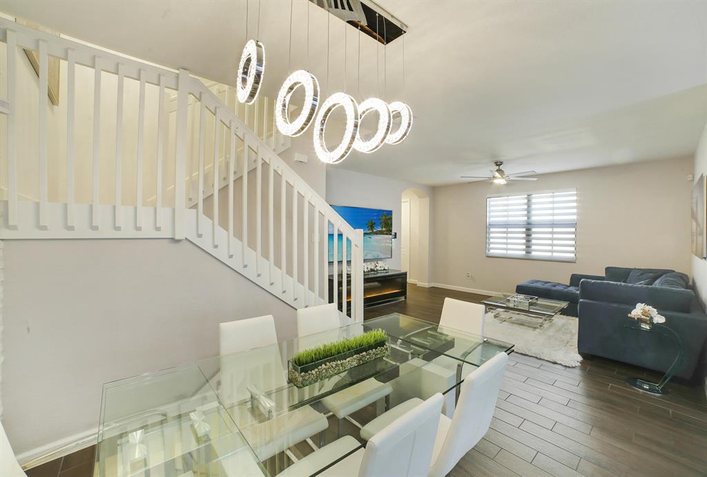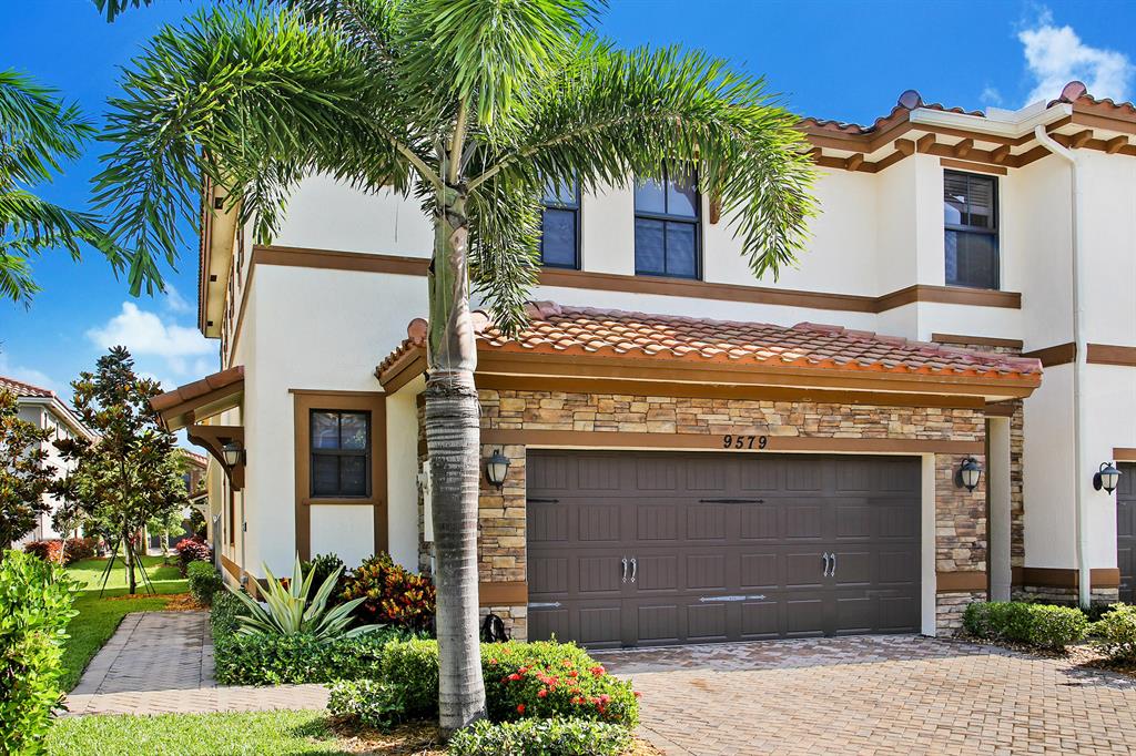 Desirable Madera model. This spacious 3br corner unit floor plan is larger than most 4br Town Parc units @ 2,050 sf. Timeless wood-like tile. Elegant custom lighting decorates the 9' ceilings. White quartzite accent wall overlooks a 24' long great room. Kitchen boasts S/S appliances, 42'' espresso cabinets, granite counters, glass subway tile backsplash, LED lighting. Hurricane impact windows dressed w/ custom white blinds including blackout shades. Tile floor continues upstairs, no carpet here! Master bedroom is topped off w/ a custom closet sys and bathroom fit for a million dollar home. Both upstairs bathrooms finished w/ gorgeous 32x32 porcelain tile. Enjoy lifestyle amenities at 3 state-of-the-art MiraLago facilities including 24,000sqft club MiraLago and Cascata. A rated schools