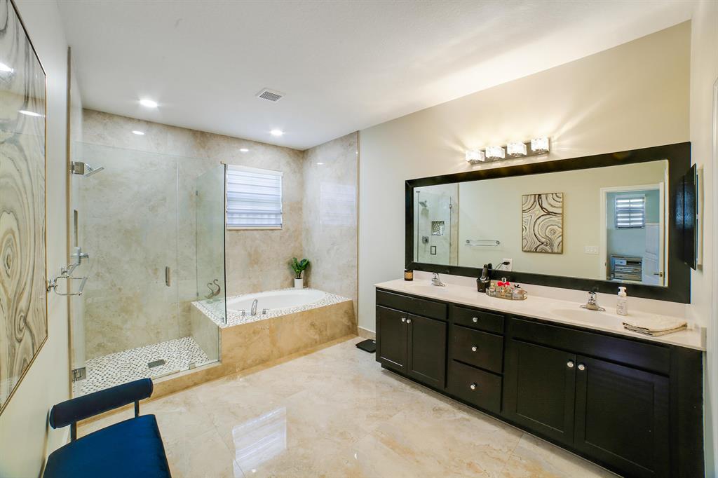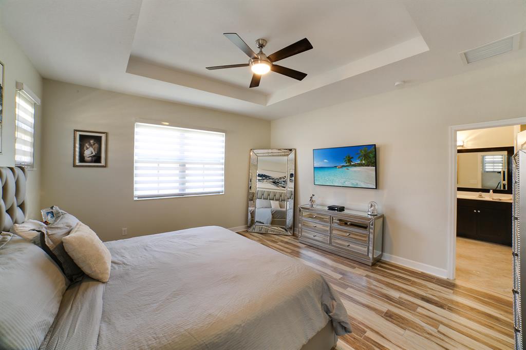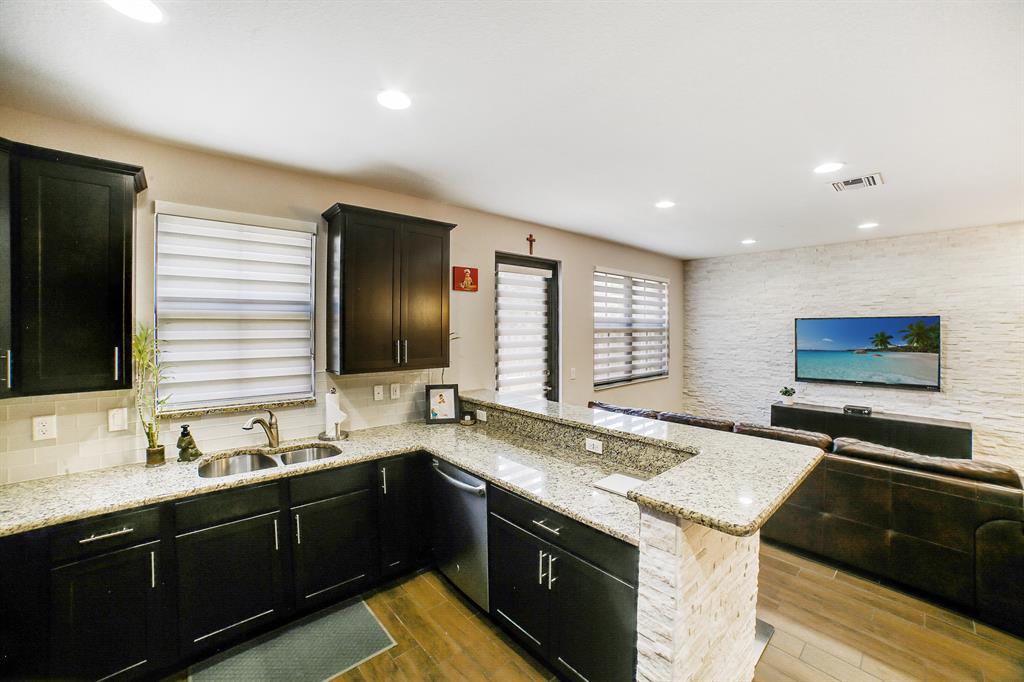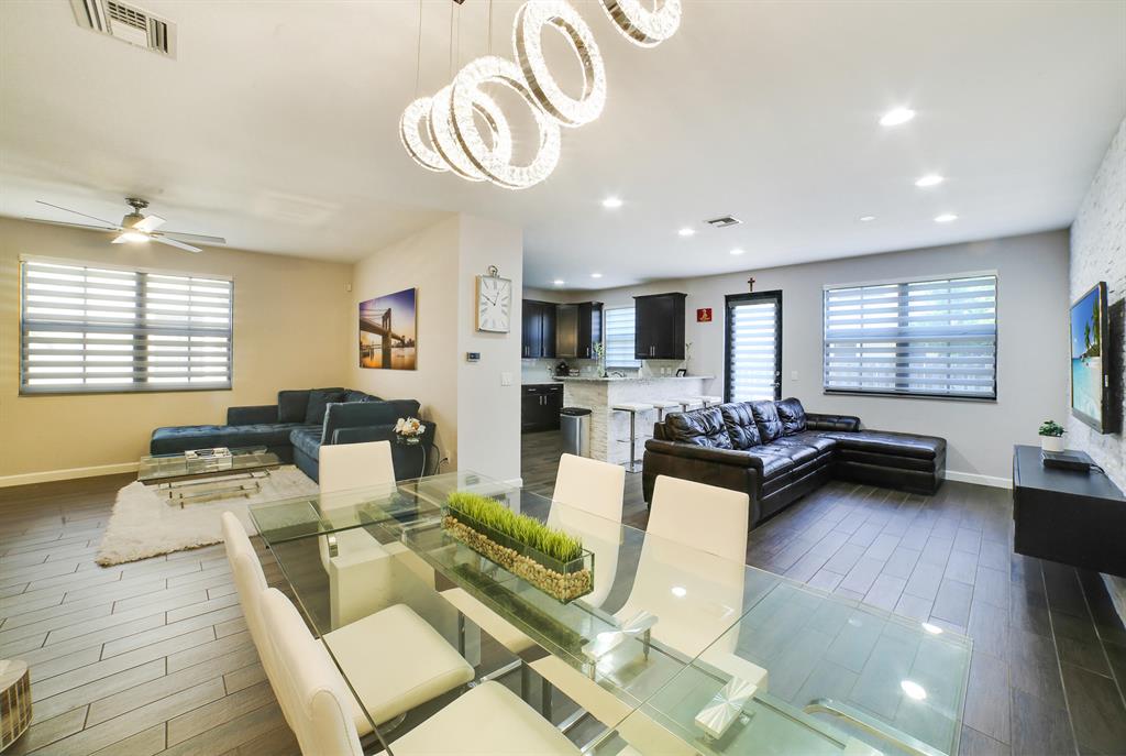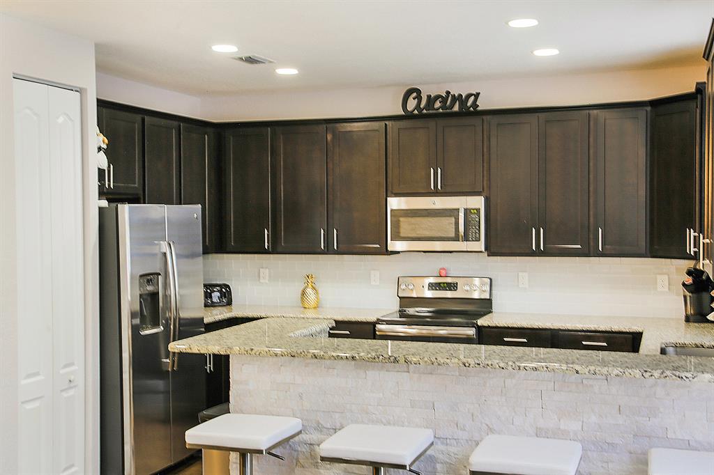 Desirable Madera model. This spacious 3br corner unit floor plan is larger than most 4br Town Parc units @ 2,050 sf. Timeless wood-like tile. Elegant custom lighting decorates the 9' ceilings. White quartzite accent wall overlooks a 24' long great room. Kitchen boasts S/S appliances, 42'' espresso cabinets, granite counters, glass subway tile backsplash, LED lighting. Hurricane impact windows dressed w/ custom white blinds including blackout shades. Tile floor continues upstairs, no carpet here! Master bedroom is topped off w/ a custom closet sys and bathroom fit for a million dollar home. Both upstairs bathrooms finished w/ gorgeous 32x32 porcelain tile. Enjoy lifestyle amenities at 3 state-of-the-art MiraLago facilities including 24,000sqft club MiraLago and Cascata. A rated schools