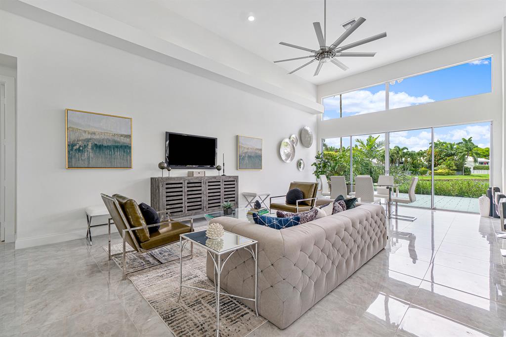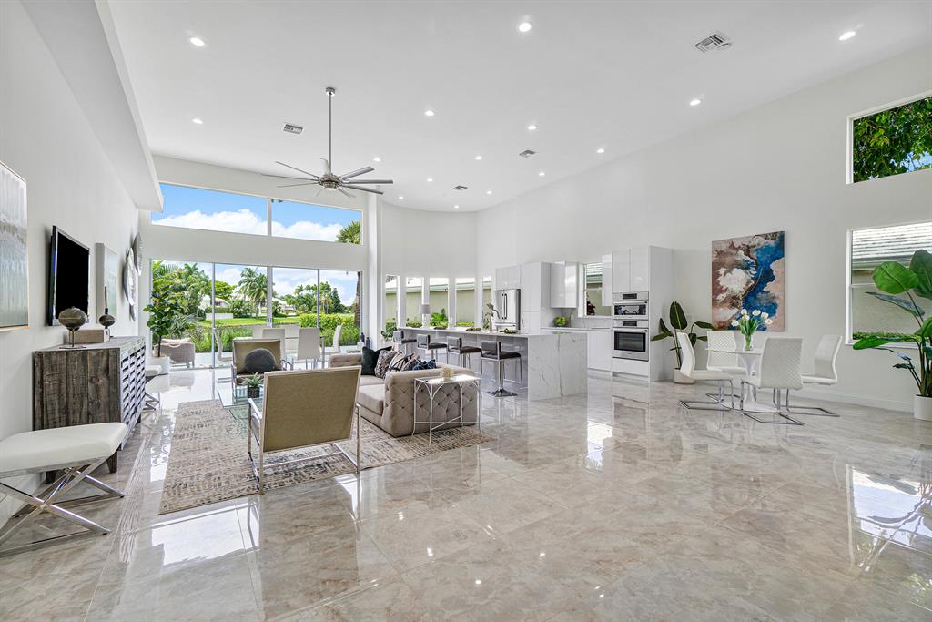 Beauty awaits you in this one-story, fully renovated home with designer finishes. The reimagined floor plan allows for open concept living to the fullest with voluminous ceiling heights throughout. The extraordinary and nearly 15-foot long island in the kitchen is a dramatic focal point from the moment you enter the home. Brand new Bosch WiFi enabled appliances including a 36'' radiant electric cooktop and a 36'' telescopic downdraft system complete the gourmet kitchen. There is a beautiful wet bar with wine refrigerator off of the living room. The master suite is very spacious with great custom-built closet spaces and tranquil views of the water. A grandiose master bath has a large walk in shower along with a deep soaking tub, a Toto toilet and dual vanity sinks. Two additional bedrooms -