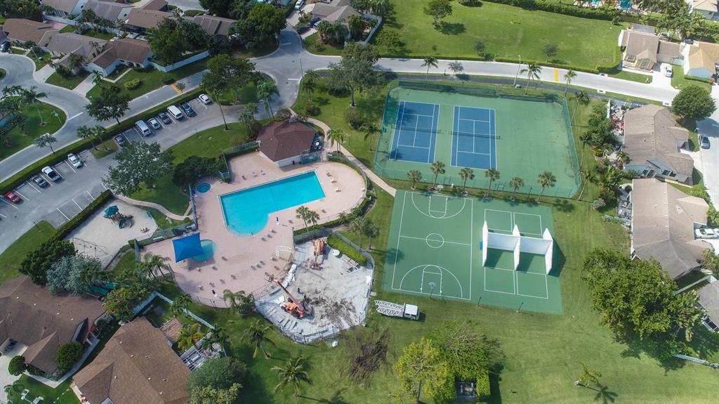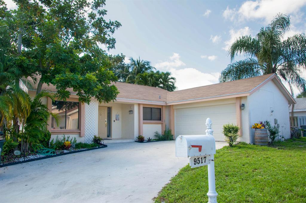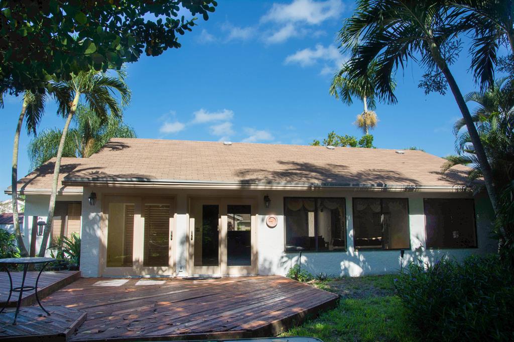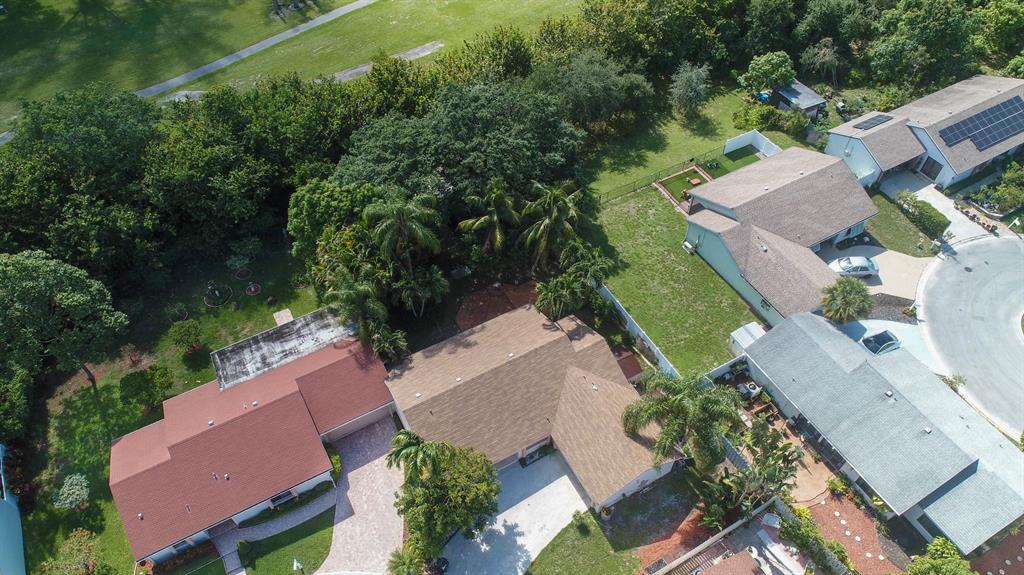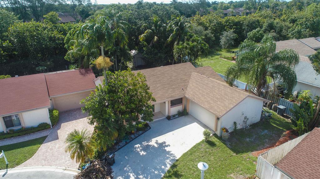 Cul-de-sac living at its finest! This spacious house has stunning cedar wood ceilings & an open concept great for entertaining family & friends! Kitchen is open & spacious w/ plenty of Brazilian wood cabinets, & counters! Garage door is hurricane impact! Interior is freshly painted with new Travertine floors & ceiling fans throughout! Plenty of room to park your boat/rv or extend the driveway for additional parking! This lot's tropical landscaping includes 3 sheds; a wood deck (with electrical hookup for a jacuzzi/hotub); opens to a local easement that affords you additional green space that is adjacent to Vista del Lago's golf course! Situated behind Boca West Hospital, with shops, movies, & dining all around! All sizes approximate. 4th bedroom/den/office is a garage conversion w/ closet