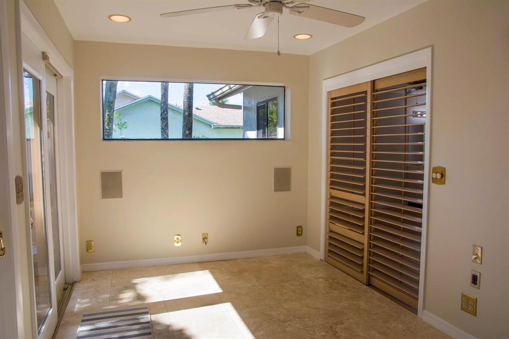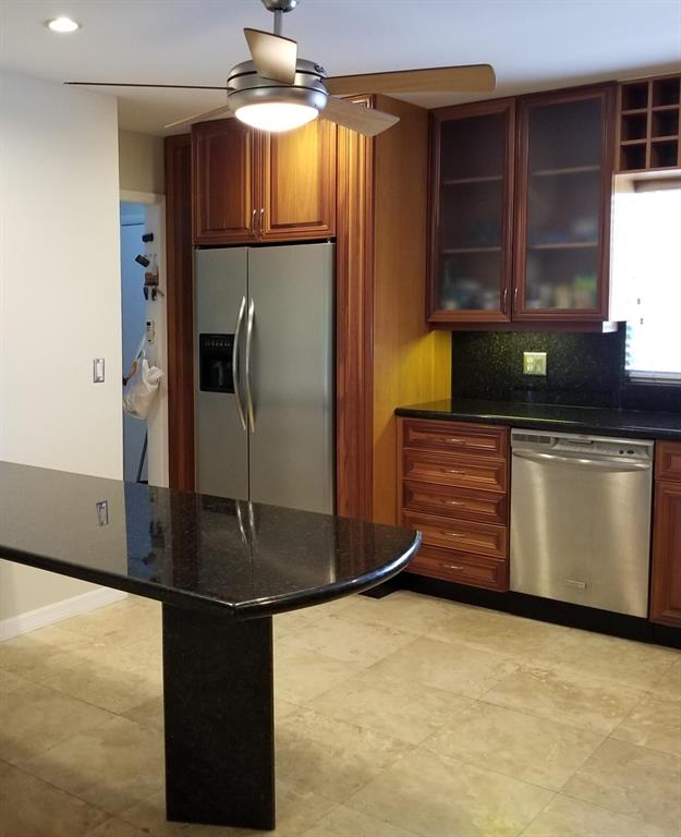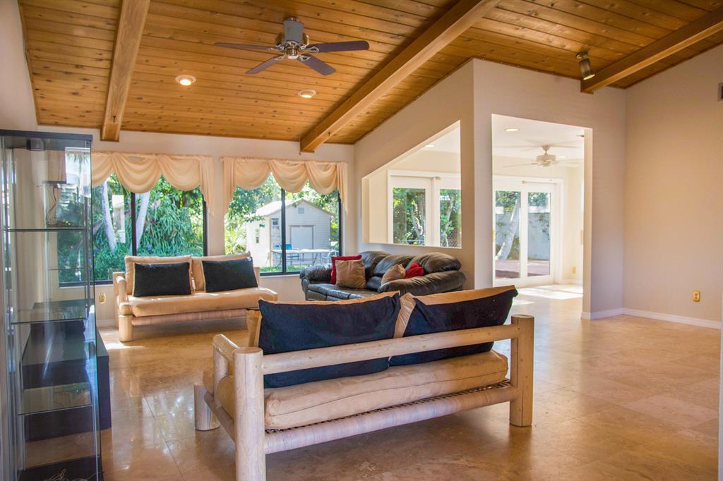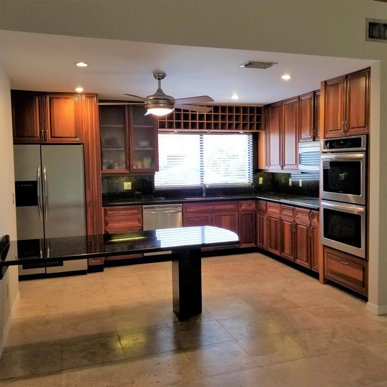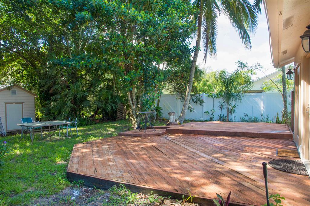 Cul-de-sac living at its finest! This spacious house has stunning cedar wood ceilings & an open concept great for entertaining family & friends! Kitchen is open & spacious w/ plenty of Brazilian wood cabinets, & counters! Garage door is hurricane impact! Interior is freshly painted with new Travertine floors & ceiling fans throughout! Plenty of room to park your boat/rv or extend the driveway for additional parking! This lot's tropical landscaping includes 3 sheds; a wood deck (with electrical hookup for a jacuzzi/hotub); opens to a local easement that affords you additional green space that is adjacent to Vista del Lago's golf course! Situated behind Boca West Hospital, with shops, movies, & dining all around! All sizes approximate. 4th bedroom/den/office is a garage conversion w/ closet