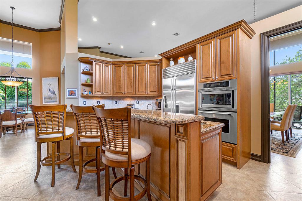 STUNNING SINGLE STORY COURTYARD HOME ON A FABULOUS WATERFRONT LOT IN THE SEASONS. THERE IS A TOTAL OF 4 BEDROOM, AND 4 BATHROOMS. THE MAIN HOUSE HAS A POPULAR SPLIT BEDROOM FLOOR PLAN WITH 3 BEDROOMS AND 3 BATHROOMS AND THE DETACHED GUEST HOUSE HAS ONE BEDROOM AND A ONE FULL BATHROOM. THE SPACIOUS COURTYARD POOL AND PATIO AREA IS GREAT FOR ENTERTAINING, PRIVACY AND FAMILY FUN. FEATURES AND UPGRADES INCLUDE A KITCHEN WITH CUSTOM CABINETS, UPGRADED APPLIANCES INCLUDE SUB-ZERO, THERMIDOR, WOLF, AND BOSCH. THERE IS A HUGE SCREENED IN PATIO ENCLOSURE OFF THE LIVING AND DINING ROOM TO ENJOY THE LAKE SETTING, NEWER LIGHTING INSIDE & OUTSIDE, NEWER PAVED CIRCULAR DRIVEWAY , THERE ARE 3 A/C UNITS TO MAXIMIZE ENERGY EFFICIENCY