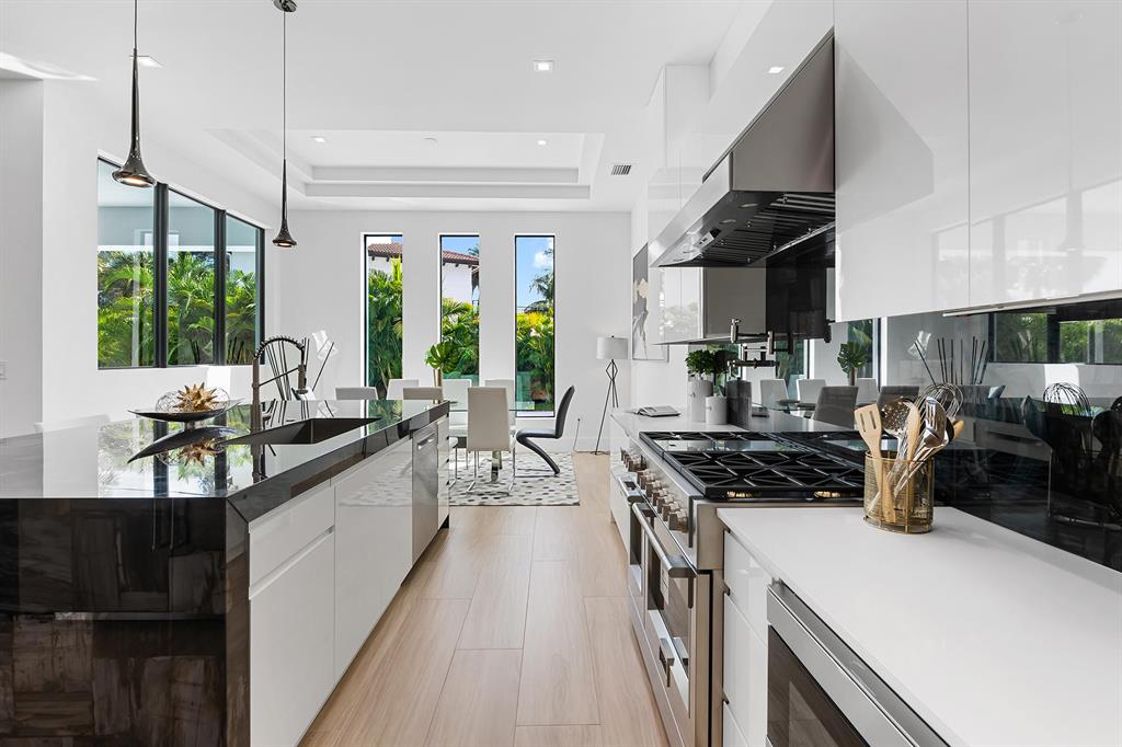 New construction in East Boca Raton just completed in September 2020! This stunning two-story home features an open layout, modern design & luxurious details to elevate your everyday life. A chandelier hangs overhead as you enter into your great family room with twelve foot ceilings for a light & airy feel. The gourmet kitchen overlooks your living area, perfect for entertaining the whole family. A unique porcelain kitchen island & backsplash add dimension to the kitchen that also features a Sub-Zero refrigerator & gas range. Your lavish master bedroom is situated downstairs complete with a spa-like bathroom & expansive walk-in closets for him & her. Ten foot sliders in both the master bedroom & great room lead out to your private tropical oasis complete with a covered patio...
