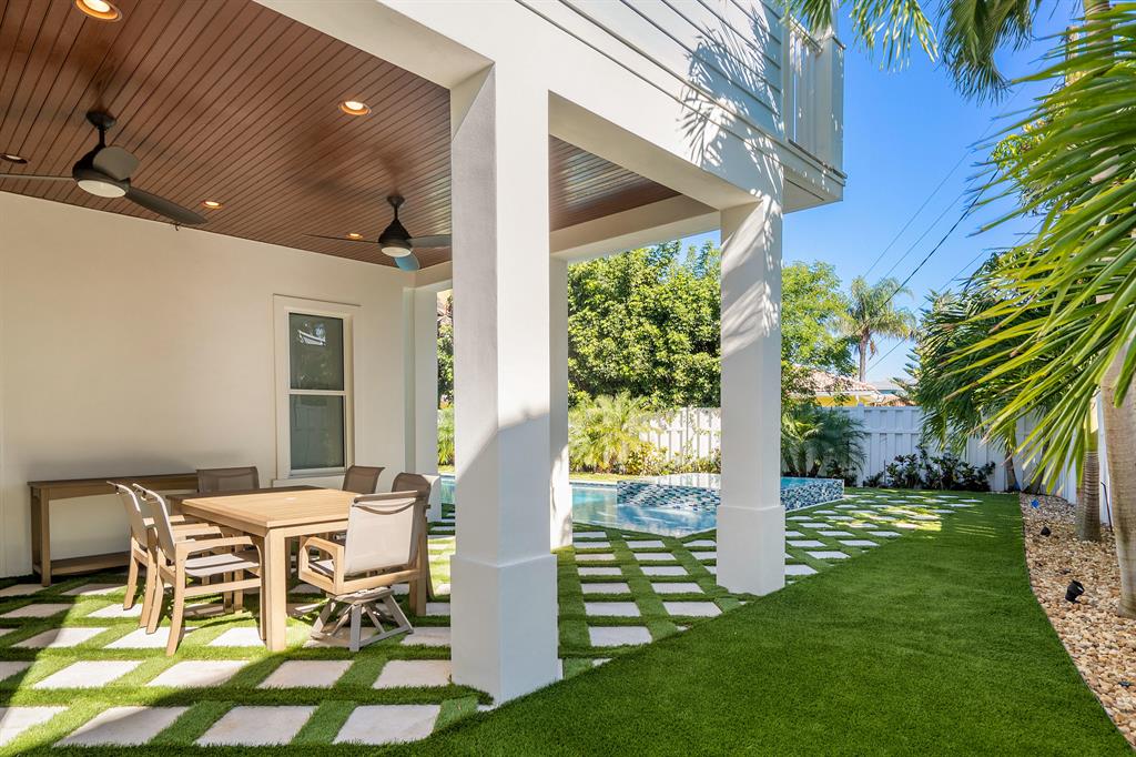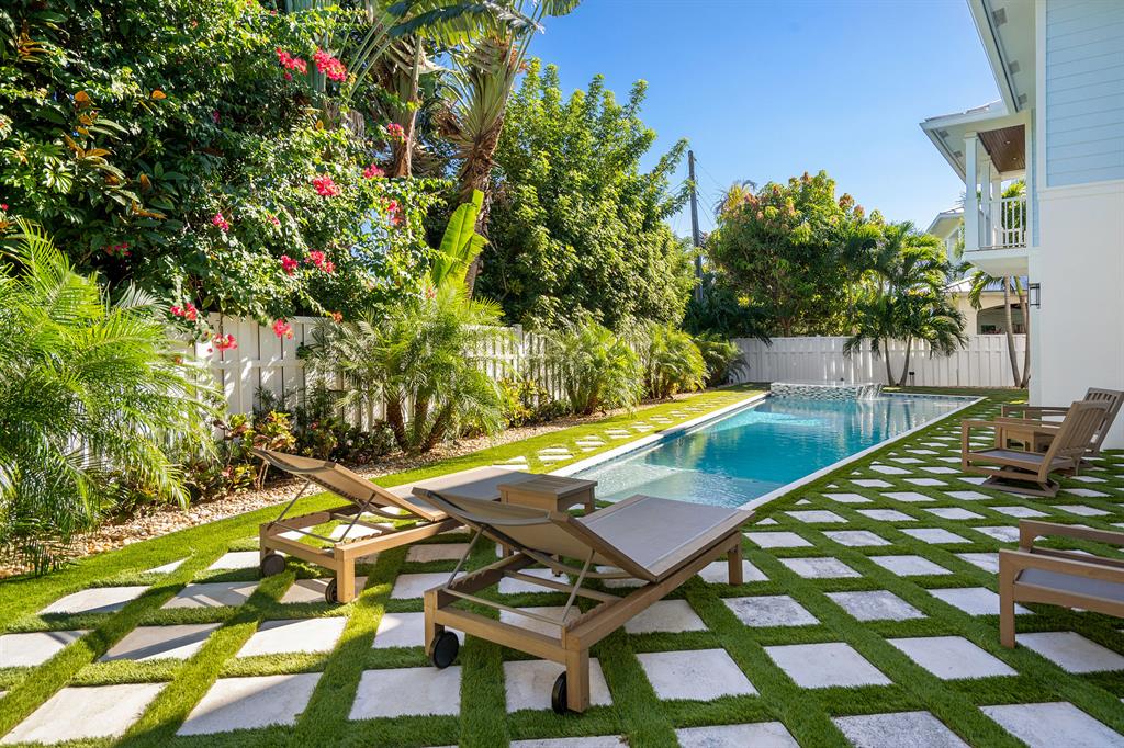 WOW! Key West meets Coastal Contemporary with this stunning single family home perfectly nestled between the Intracoastal Waterway and Atlantic Ocean. Volume ceilings, tons of natural light & functional layout sprawling across 3,300 living sqft. 4 ensuite - generously sized bedrooms, 3.5 baths, ultra-sized loft & downstairs office - makes a perfect landscape for your next dream home. SPECTACULAR backyard -- impeccably designed and ready for its new and proud owner. 50 foot brand new modern pool equipped with a stylish spa! Your modern astroturf and tile pool deck is clean, creative & carefree. Sit out back with your beautiful Ocean breeze offered by the backyard's desirable Eastern exposure. Lush landscaping, overhang for dining al fresco with a pecky cypress exposed wood