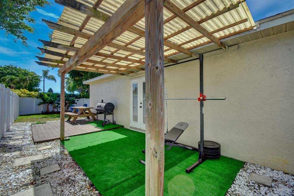 Walk in to your cozy 3 bed 2 bath single family home recently updated to an open living room/kitchen floor plan. Kitchen updates include new quartz counter tops & under mounted stainless steel sink. Living room features high vaulted ceilings, crown molding & custom baseboards along with updated tile flooring throughout home. AC unit replaced in 2018. Property also has hurricane impact windows (except 2 with shutters). Exterior of home has flood lights and ring camera installed for security. Property sits on a great corner lot! Enjoy your large fenced in yard with fruit trees. Driveway can easily accommodate up to 4 vehicles. Community offers jog/ bike paths, two pools and tennis court. Don't miss your opportunity to own this beautiful home in prime Central Boca Raton with A+schools.