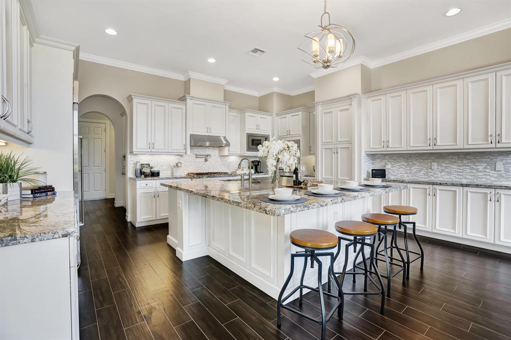 Luxury at its finest. This immaculate 2015 home has over 5600 of living square feet and is filled with upgrades and custom features including a whole house generator and a large circular driveway. This is one of the best lots in The Oaks on 0.42 acre with a large side yard, sleek saltwater pool and spa and stunning lake views. As you enter the home a double staircase takes you to the master suite and 3 additional bedrooms with an extra room that could be used as an office or craft area. Downstairs has an elegant open concept kitchen with bright floor to ceiling windows that enhances the architectural features and design of this home. There is an office and guest suite on the main floor in addition to a large recreational room that could be used as a movie theater or play area.