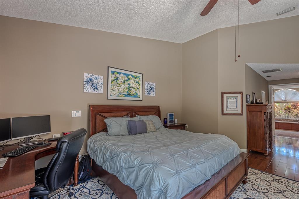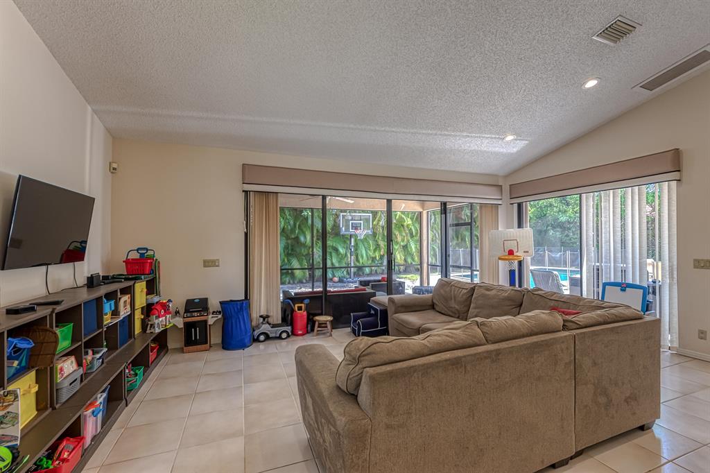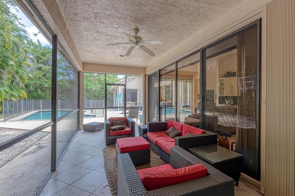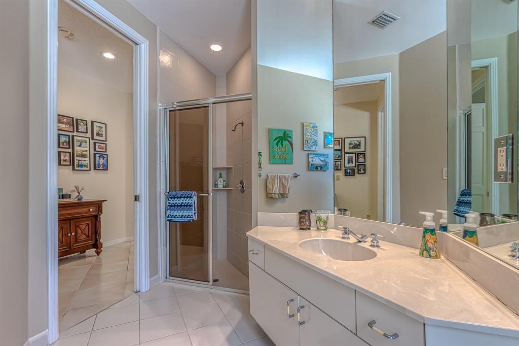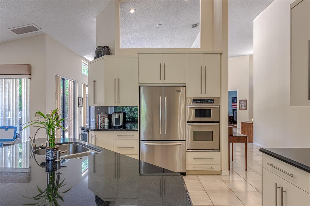 Spectacular 3 bedroom, 3 full bathroom corner lot pool home. Located in the prestigious community of Encantada-Boca Pointe. Wow!! Large circular driveway in front of house plus 2 car garage on the side. This move-in ready home offers a modern kitchen w/ white cabinets, granite countertops, and island that opens up to the family room. Newer kitchen appliances. Newer A/C, newer water heater, and pool heater. Tile throughout the house. Modern wood type flooring in bedrooms. Built in closets. Open floor plan with lots of natural sunlight. Neutral white color throughout the house. Corner view of lake from the master bedroom. Automated AC, garage, Jacuzzi, Pool, and alarm from phone apps. Enjoy your private tropical backyard, heated pool and Jacuzzi. Screened patio. Home generator.