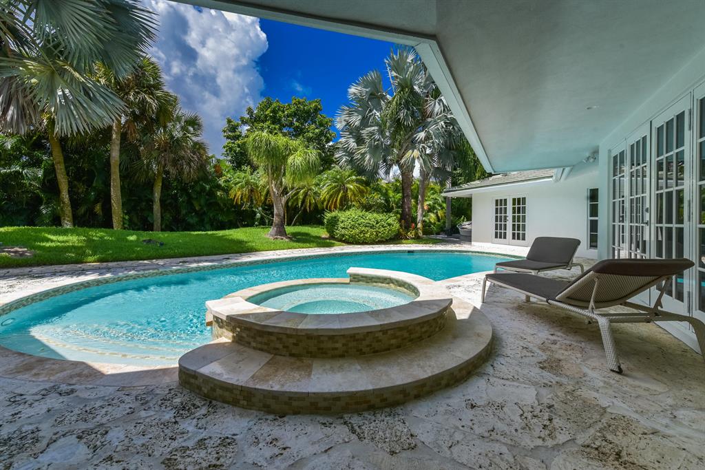 Beautiful one story house featuring 4 bedrooms and 4 baths plus office/den fully renovated by a European designer with marble and engineered wooden floors and a large chef's kitchen designed for a synergy of indoor/outdoor living. All rooms open via French doors to a private pool and garden area with an outside grill, dining and living space surrounded by fruit trees. The full renovation includes hurricane impact windows and doors, new roofing, garage doors, floors, electrical plumbing, dual AC, water heater, a new pool heating system, LED lights and an electric car charger. The information herein is deemed reliable and subject to errors, omissions and changes without notice. All measurements are approximate.