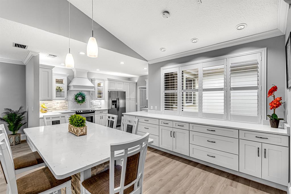 If you are looking for that ''WOW'' factor look no further. NO MANDATORY Membership required. This home has it all! ROOF 6 years old! Then from the moment you enter this home you will notice the OPEN floor plan that has been totally remodeled. You have a Gorgeous kitchen with White Shaker cabinets and quartz counter tops & stone backsplash with under cabinet lighting.. The large Island that seats 6 along with all stainless appliances. The kitchen flows into the spacious living and dining room with all new grey vinyl flooring that leads to 2 large sliders out to your Heated pool with a salt chlorinator. Covered patio with stacked stone wall & view of the 13th hole on Maycoo golf course. The pool was refinished with Diamond Brite in 2018.