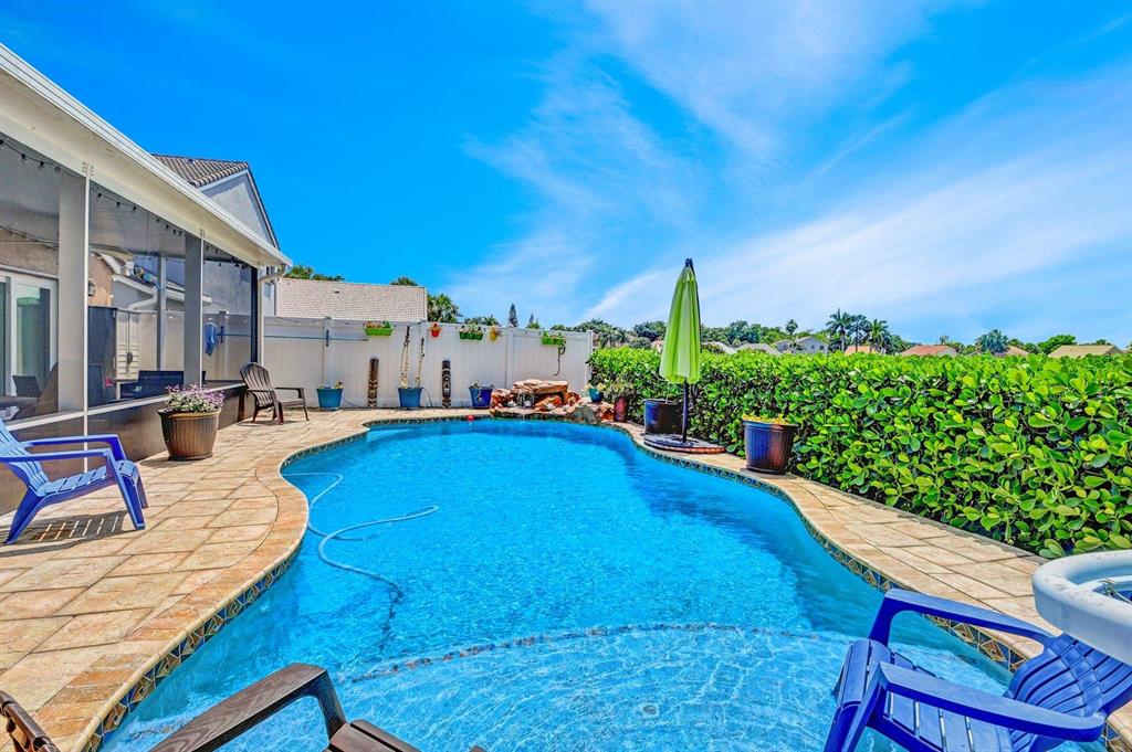 Spectacular Pool & Waterfront Renovated Home w/4 bedrooms, 2.5 baths, 2 Car Garage & pavered driveway. Dramatic entrance w/soaring 2 story volume ceilings & picturesque impact windows. Enjoy the sense of openness, volume, & space. Living areas & master bedroom are downstairs & feature 20 inch tile on a diagonal tile throughout. All 3 guest bedrooms are upstairs w/high end laminate wood flooring. All 3 bathrooms are luxurious. Gourmet chef's kitchen with white shaker cabinets some w/frosted glass inserts, New Samsung Tuscan SS appliances from 2020, quartz countertops w/tile backsplash, LED Recessed lighting & a sunny eat-in area. New S Tile Roof from 2018. Impact rated windows & doors/completed in 2019 w/ manufacturer warranty Plus Accordion shutters. High end ''low E'' rated impact glass.