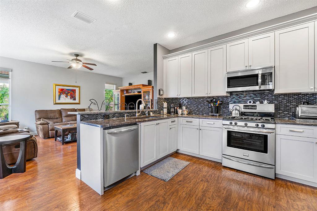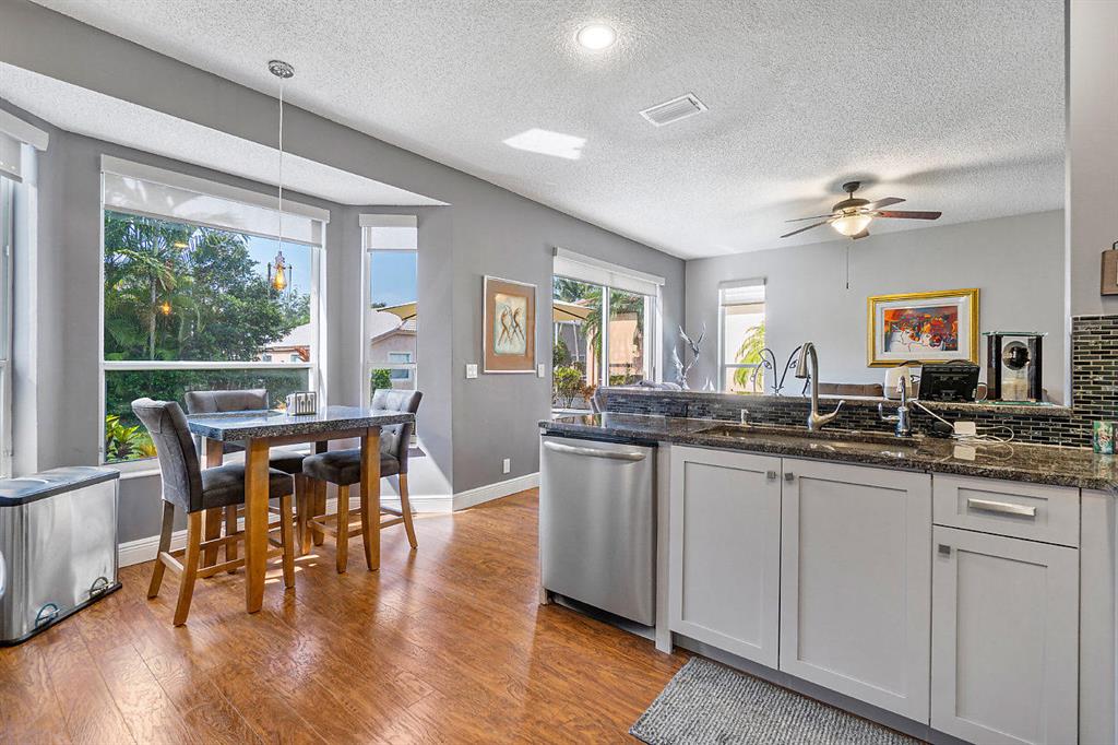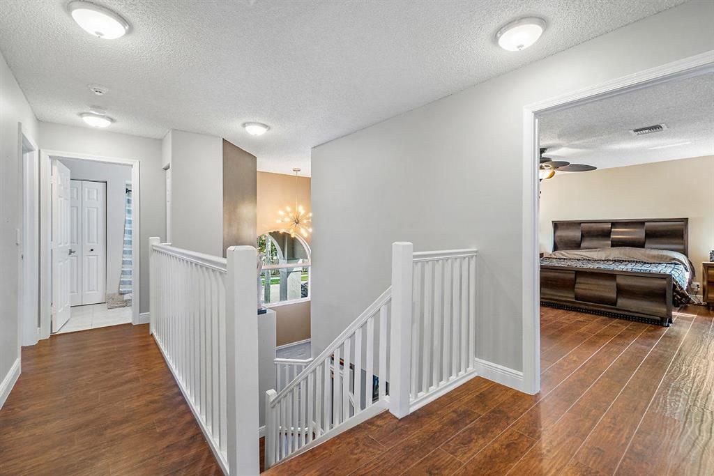 Pembroke Falls Masterpiece. Move-in ready, meticulously maintained, and recently renovated. The Montego model is a two story 4/2.5/2CG energy efficient SMART home features, remodeled kitchen, wood cabinetry with soft close features, granite counter tops, stainless steel appliances, all new window treatments, wood floors downstairs, newer AC/gas hot water heater/washer. Professionally redecorated spacious master suite with his and her closets, volume ceilings and dressing area. Complete hurricane protection incl. accordion shutters & partial impact glass. Monitored by Google home app, these features control AC, interior/exterior lighting schedule, dimming, garage door. All lighting LED. Newly painted exterior and interior 2019, newly renovated 2 car garage with epoxy flooring, garage door