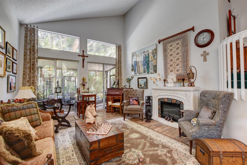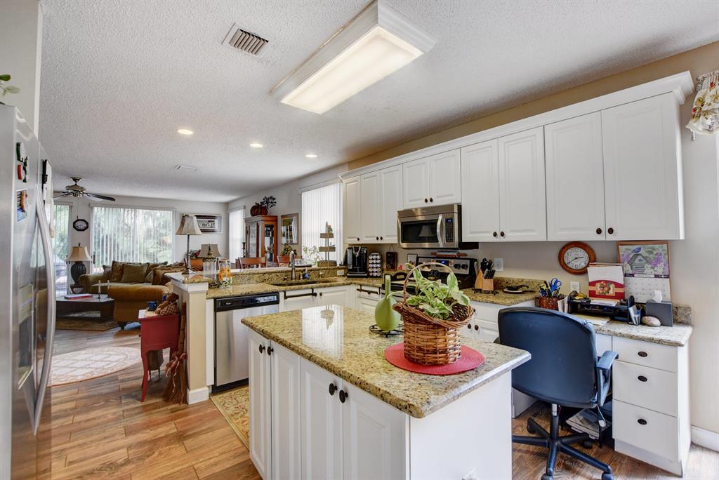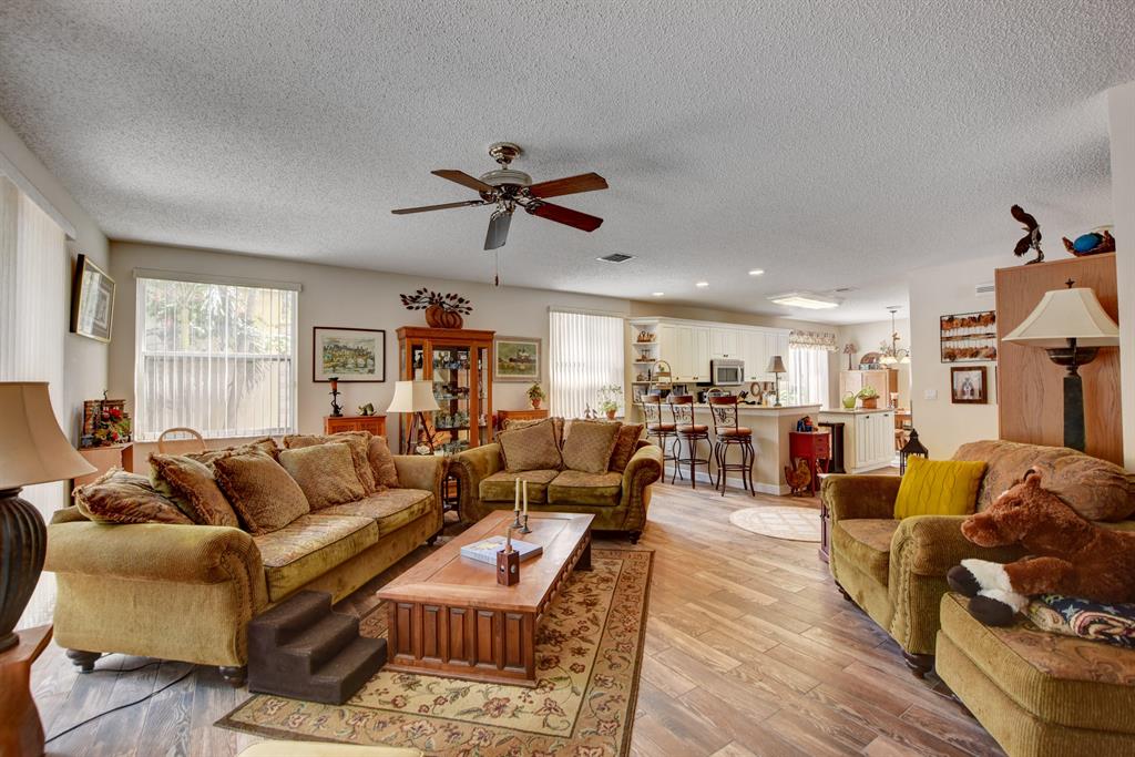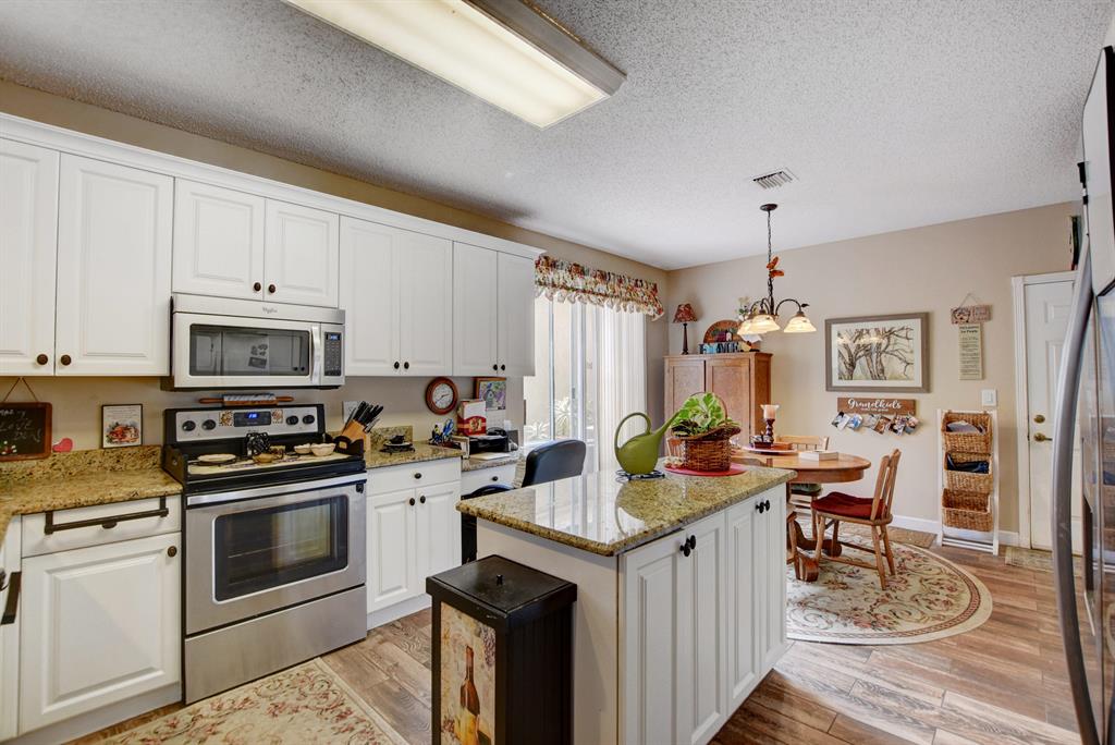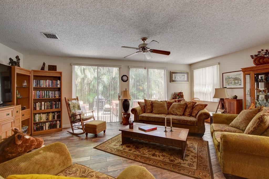 Spacious 2-story home located on private landscaped lot with over 3,000 SF of living area! This 4 Bedroom, 2 1/2 Bath home has accordion shutters, wide 3 car garage and expansive driveway for ample parking. Long private entryway leads you to this lovely home with beautiful new wood plank tile throughout entire 1st floor. Large open floor plan with high ceilings, renovated powder room downstairs and separate family room. Updated eat-in kitchen with granite countertops, separate island for added cooking space, GE Whirlpool stainless steel appliances, double sink, tons of cabinets & storage. Separate laundry room with sink and sizeable washer & dryer. Many upgrades include added sunroom with covered & screened in patio overlooking private landscaped backyard with custom pavers, majestic Royal