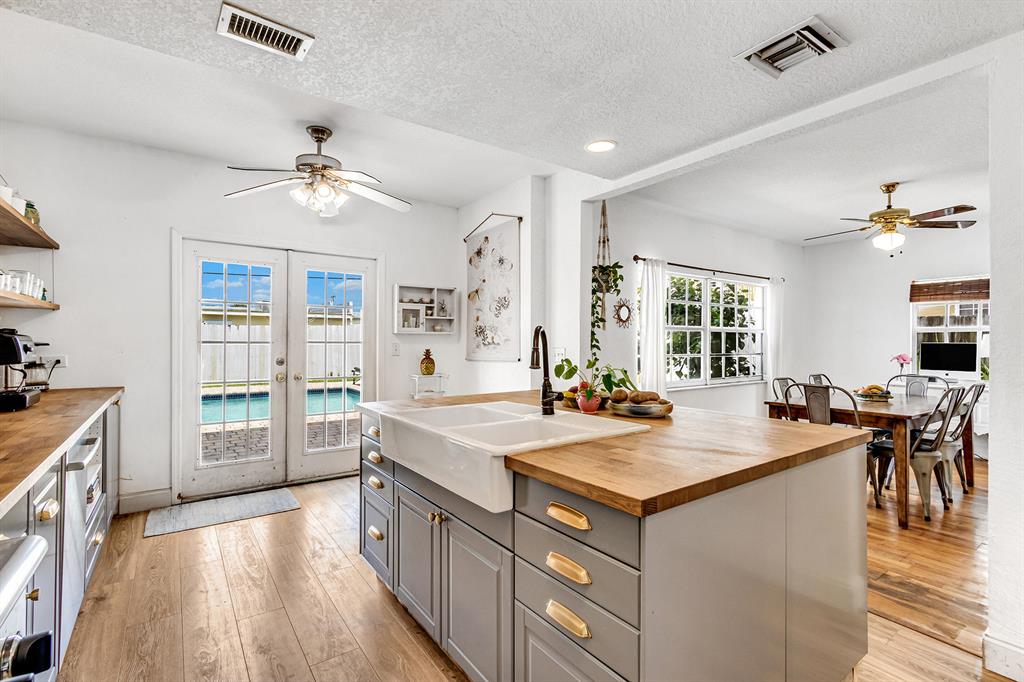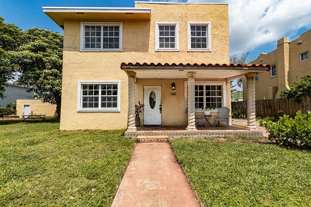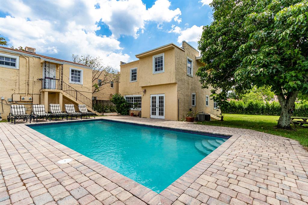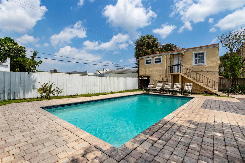 Amazing opportunity to own a double lot in the heart of West Palm Beach's historic district. This 4 bedroom 2.5 bathroom two story pool home had the plumbing, electrical and windows replaced in 2007. The main house also features a brand new kitchen with upgraded stainless steel appliances, wood burning fireplace, wood beam coffered ceiling in living room, upgraded guest bathroom and french doors that open up to the fully fenced backyard. The backyard features a plenty of room to enjoy your newly resurfaced pool. This property also includes a guest house with a 1 car garage below and a separate 2 car garage. The guest house was completely remodeled in 2017 and had windows replaced in 2007. The guest house features 1 bedroom with separate living area, full bathroom and a full kitchen.