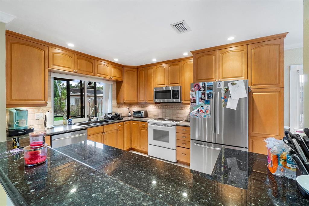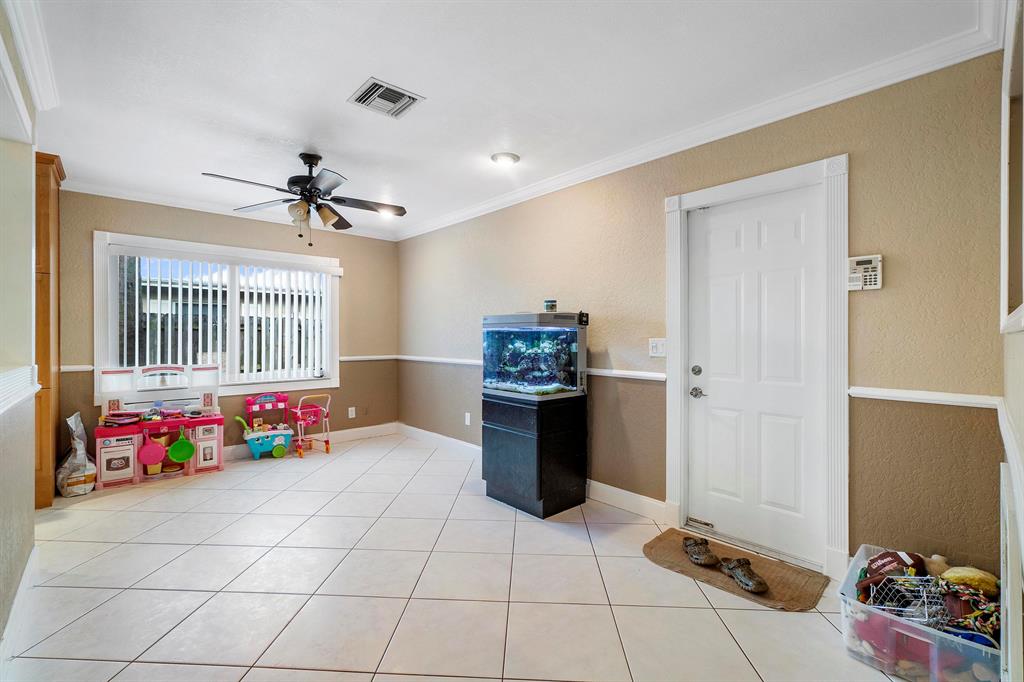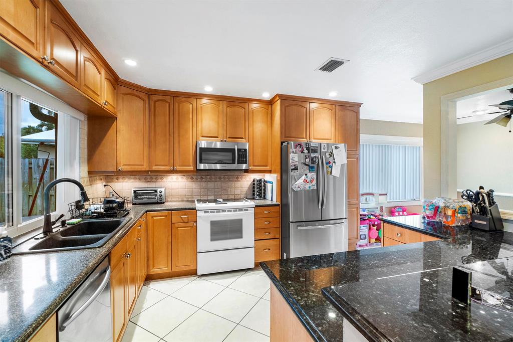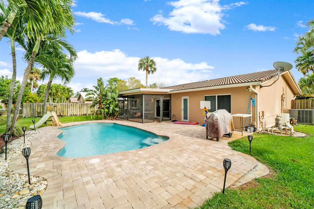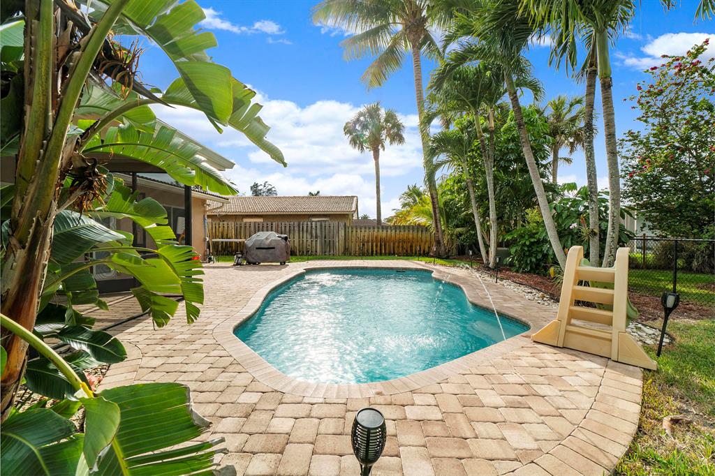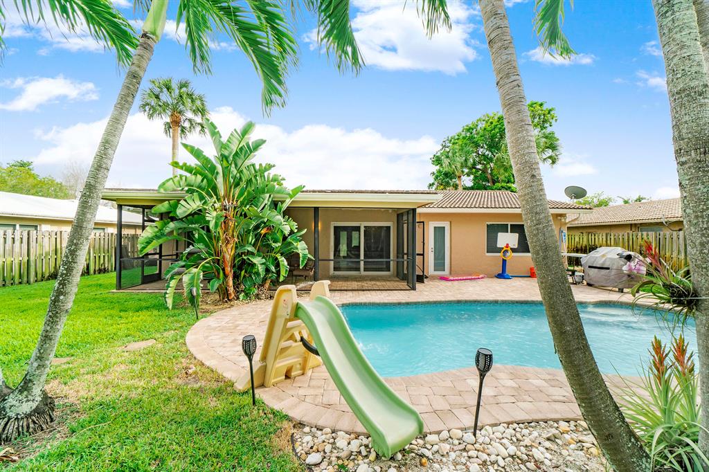 Amazing Single Family Ranch Pool Home with 2 Car Garage with Fenced yard ! Buyer's or Sellers look at the 3D Tour of the property ! Turn Key Home has Hurricane impact windows all around, Roof is Newer ! House will max out with Insrance Credits. Pool was redone less than 1 year ago just in time for summer :) Home Features 3 Bedrooms 2 Bathrooms Great kitchen with All S.S Appliances except Range, Eat up bar at kitchen island with all Granite Countertops. Huge Master Suite with Electric & Cable easy to hang T.V on Wall Master bath has Cabana Frosted French door to the pool updated bath with with overhead rain spout. Floors throught Living area is all Tile, Master & Bedrooms have wood Floors. Home Has Crown Molding Thought Home except for two bedrooms.
