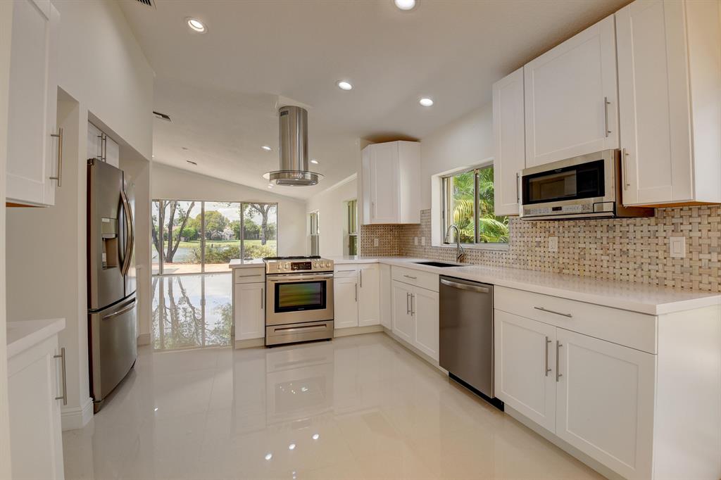 COMPLETELY RENOVATED home with NEW ROOF installed just a few weeks ago! This charming property is located in the much desired, man-gated Boca Pointe community in central Boca Raton. This recently re-done home is perfect for entertaining and ready for you to move right in! Enjoy magnificent lake views from almost every room! Beautiful 32'' x 32'' porcelain tile has been installed throughout! Hi-hats and crown molding all around! A gourmet kitchen boasts an oversized pantry, quartz counter tops, granite sink, all new stainless steel appliances and more! Master bathroom features double quartz countertop, a 72'' vanity, a soaking tub and separate shower. No membership required and several OPTIONAL membership packages available. All ages welcome and pet-friendly community!