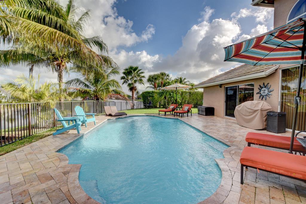 Amazing 5 bedrooms, 3.1 bathrooms, point lot, cul de sac, waterfront pool home at the desirable community of Boca Winds. This impressive home with great curb appeal features spacious and open floor plan. Beautiful updated kitchen with wood cabinets and stainless steel appliances. The family room opens to breathtaking lake views. Custom pool with travertine pool deck. Remodeled downstairs custom office its own bathroom extra added bonus of a Murphy bed. Enjoy the upstairs media room all ready for movies and popcorn. 3 car garage. Great West Boca location. Walk or bike to 3 ''A'' rated schools. Low HOA. Minutes from outdoor amphitheater, water park, nature center, tennis courts, boat ramp, pet park, and 27 hole golf course. Come and see this spectacular home!!