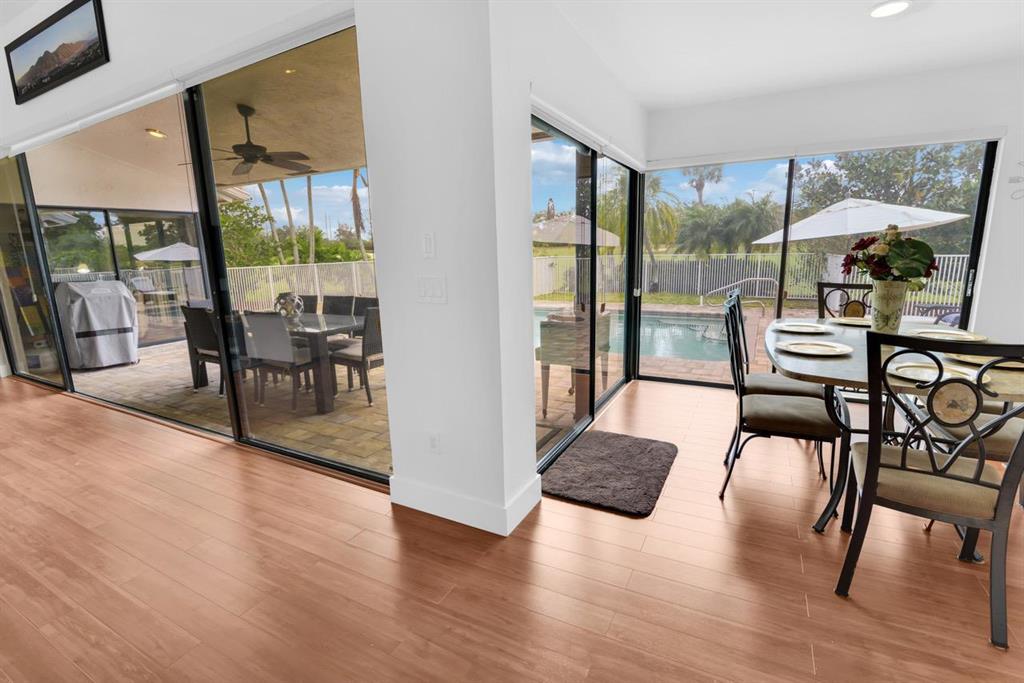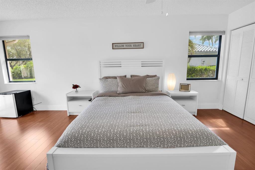 BEAUTIFUL OPEN AND BRIGHT ONE STORY HOME LOCATED ON THE 13 HOLE OF THE BOCA WOODS COUNTRY CLUB GOLF COURSE. 4 BEDROOMS, 3 BATHS, LAMINATED FLOORS THROUGHOUT, BEAUTIFULLY RENOVATED BATHROOMS AND OVERSIZED SUNNY SWIMMING POOL. GREAT LOCATION, CLOSE TO STORES, RESTAURANTS, THEATERS AND MORE. ENJOY COUNTRY CLUB LIVING AT IT'S BEST AT BOCA WOODS CC, RESORT STYLE LIVING WITH AMENITIES GALORE! TWO CHAMPIONSHIP GOLF COURSES, STATE OF THE ART GYM, HEATED POOL, DRIVING RANGE, PUTTING GREEN AND GREAT CLUB HOUSE AND RESTAURANT. GOLF EQUITY MEMBERSHIP MUST BE PURCHASED WITH THIS HOME: $30,000 BOND FULLY REFUNDABLE WHEN HOME IS SOLD, $35,000 INITIATION NON-REFUNDABLE, DUES $15,309/YR + TAX, $1500/YR DINING MINIMUM, $107/MO SERVICE CHARGE AS NO TIPPING.