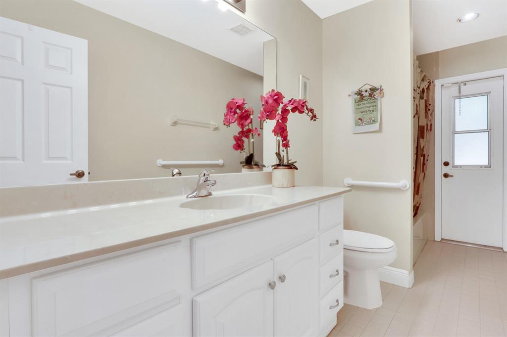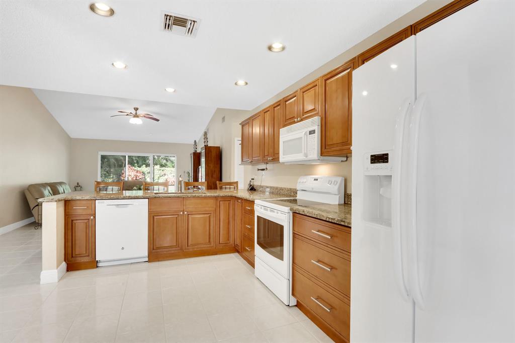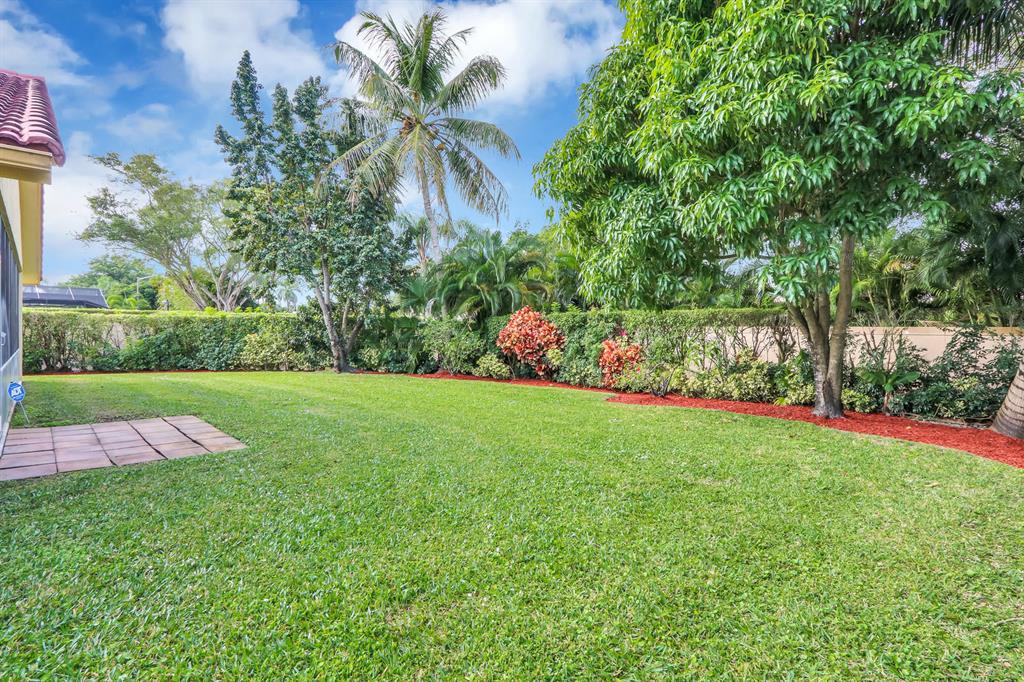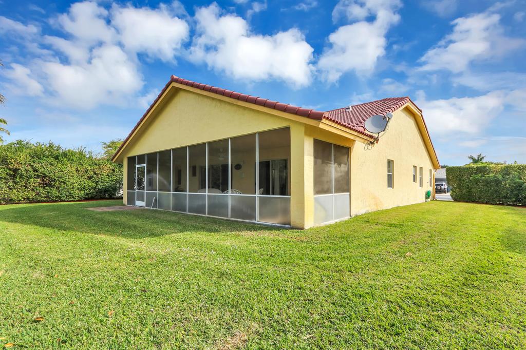 It's your lucky day, Back on market. This is a large bright 3 bedroom, 2 bath in highly desirable gated community of Boca Greens. This beautiful home has a split floor plan and is welcoming upon entry. Tiled throughout, vaulted ceilings, updated open kitchen, granite counter tops & wood cabinetry. Newer Roof 2012, A/C 2013, hot water heater 2018 and washer & dryer 2020, newer alarm system and storm panels. Enjoy the tropical landscaped backyard with fruit trees Mango & Avocado and plenty of room for a pool, great for entertaining, Inviting screened in patio. 2 car garage with a circular driveway. Golf - NO Membership required!! Cable package, high speed Internet and telephone included in the low HOA fee. ''A'' Rated schools, All Ages and Pet Friendly - Great location