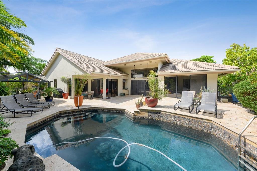 MANDATORY MEMBERSHIP!! Magnificent Brazilian mahogany front doors open to reveal a totally renovated contemporary masterpiece. Three bedroom, 2.1 bath residence sited on cul-de-sac lakefront lot presents the absolute finest in finishes, appointments , details -- 24'' travertine floors, amazing light fixtures, incredible chef's kitchen with teak cabinets and Bosch appliances, spa-like master bath with a therapeutic air tub and shower with multiple rainfall sprays, wall jets and hand helds. The master suite features porcelain slate tile flooring, remote control shades, and custom built-in huge closet. The redone lagoon-style pool is an oasis with lush landscaping and beautiful lake views. This exceptional residence must be seen to fully appreciate the many upgrades and details