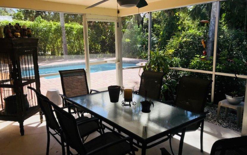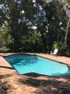 Location! Location! Quaint home with European flair on ample private lot, backing up to Cypress Knee Preserve. Close to Town Center mall, shops and restaurants. Wonderful neighborhood. Voluntary HOA, no need for application or interview. Brand New AC system; washer and dryer; newer appliances in kitchen including Bosch DW, Range, extra Kitchen Aid wall oven, newer counter depth refrigerator; new quality laminate floors in east hallway and bedrooms 1 and 2, Impact windows. Living room dinning room area has beautiful natural stone floors. Florida room opens to pool patio and to backyard.Great flow for entertaining and enjoying the privacy of a lush backyard with spectacular huge trees. Large 2 car garage with storage space and laundry opens to a great paved driveway for 4 cars.