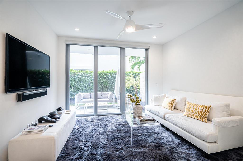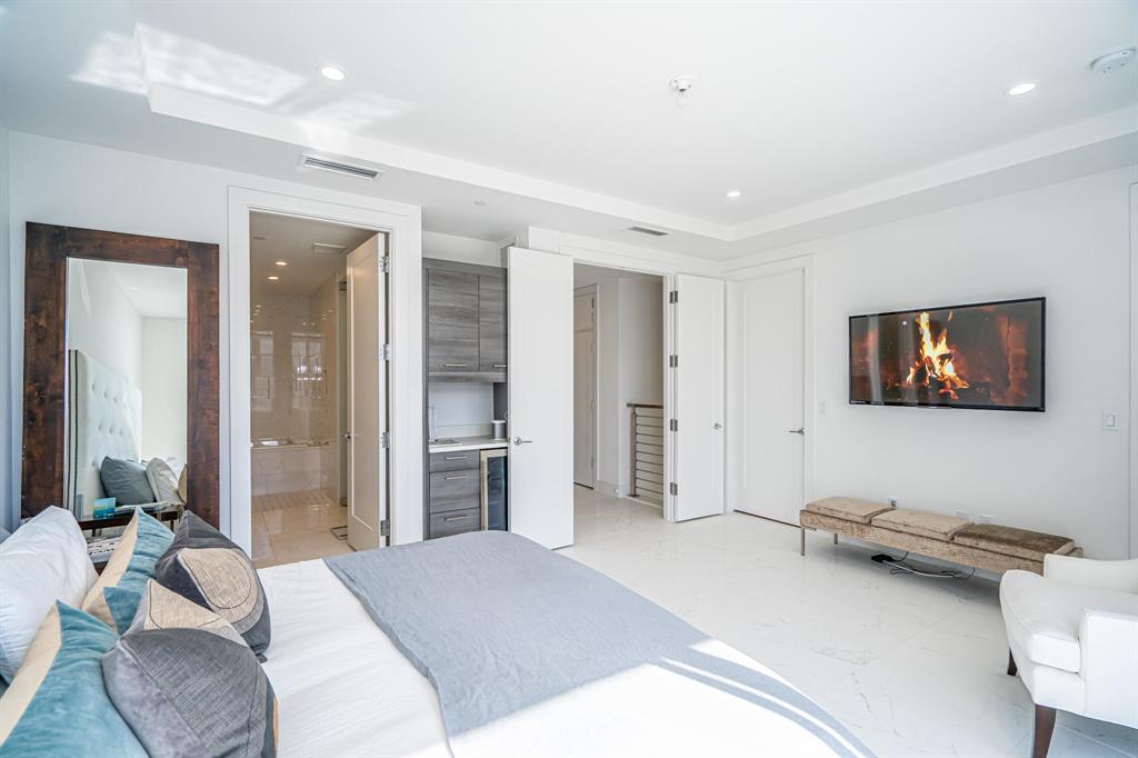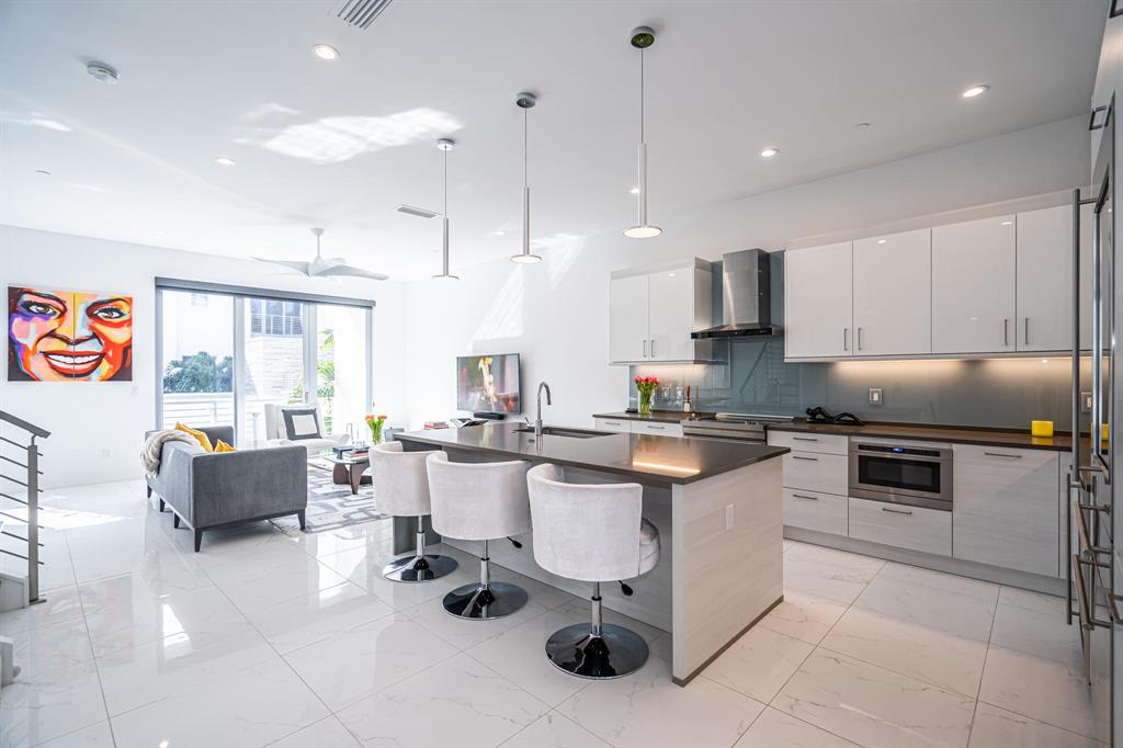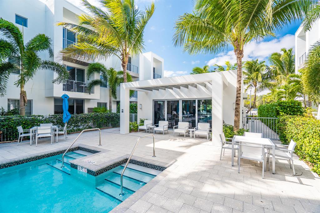 In the heart of Boca Raton, this gated luxury Moderne Boca Townhome is only a few minutes from the Beach, Mizner Park, Town Center Mall and A-Rated Schools. This fabulous 3 story home features stunning contemporary architecture, a gourmet kitchen with custom glass backsplash, waterfall quartz counter tops, wine refrigerator, glass front streamlined refrigerator, Jenn-Air appliances , impact glass and your own private elevator. The open floor plan offers 10-foot ceilings and 9-foot sliders with 24''x24'' tiles throughout. This unit is rare boasting a 4th bedroom with plenty of room for entertaining inside and a beautifully landscaped patio on the ground level for your enjoyment. Includes a 2 car garage. The community has a fitness center and luxurious pool with intimate lounging areas.