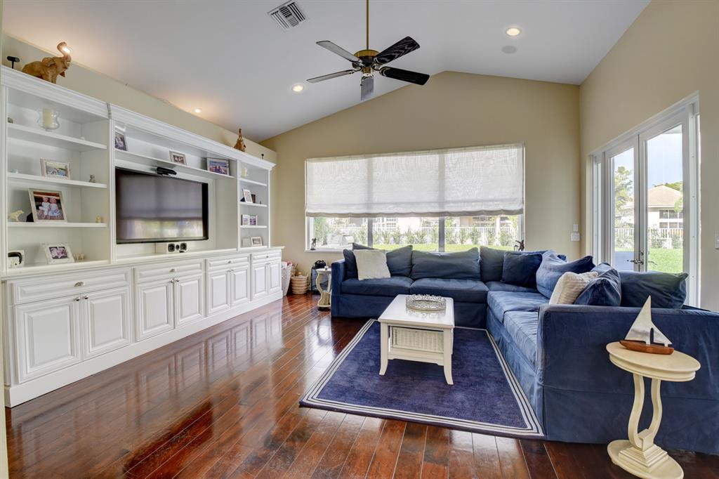 3205 Harrington Drive is the perfect marriage between traditional and contemporary. The hardwood flooring and plantation shutters throughout create a classical feel, while the combination open dining/living room and natural lighting offer a more modern energy. The oversized, private backyard is fashioned with a heated pool and spa, a summer kitchen with grill and sink, an enormous overhang and plenty of yard for either a game of soccer or a dog run.Every aspect of this home has convenience and comfort in mind. The family room is open to the kitchen and backyard, and is adorned with a gorgeous white built in. The kitchen is a vision in white- impeccable with a desk, two ovens, and a beautiful back splash.