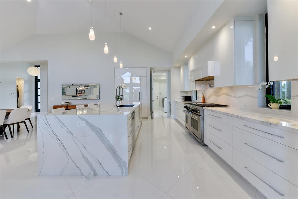 Spectacular completely renovated one- story 3 bedroom home with no steps, in the Fairway Terrace section of St Andrews Country club, which offers the maintenance free living of a condominium combined with the privacy of a single family home. High volume ceilings in the great room, offers magnificent views of expansive lake and golf course fairway vistas. As you walk into this stunning home you are greeted with white porcelain floors throughout and a gourmet kitchen with top of the line appliances and fittings. The master suite includes a luxurious master bathroom and generous closets. Other amenities include impact resistant windows and new roof. The expansive outdoor entertainment area features a summer kitchen and a fire pit all overlooking these beautiful views. This See MORE...