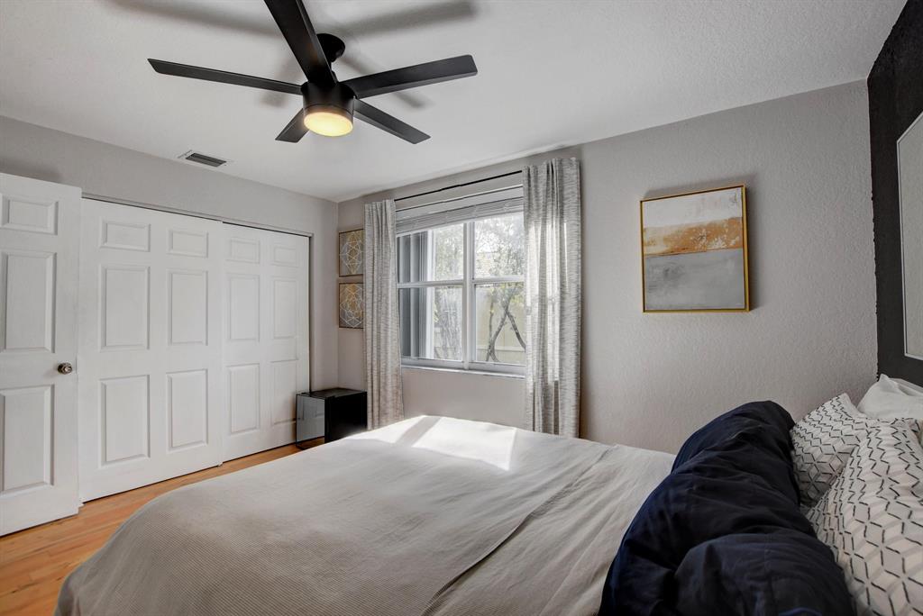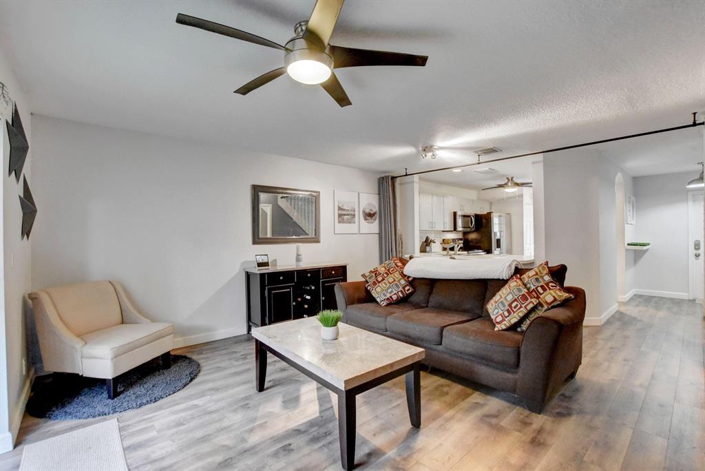 Smart Townhouse features professional monitoring from Ring security systems. Recent upgrades include: digital thermostat, stainless steel appliances, five blade LED fans in each bedroom, kitchen and living area. The ash flooring has that soft yet rustic look you'll love. New vanities were installed along with light fixtures, cultured marble vanity counter tops and elongated toilets. Home has full size washer and dryer, custom hurricane shutters, retractable awning, and solar powered outside lighting. Great schools surround this property like G Star, Berkshire Elementary, Meadow Park, and Palm Springs Middle School. HOA includes 24/7 manned surveillance, cable, community pool and kids playground.