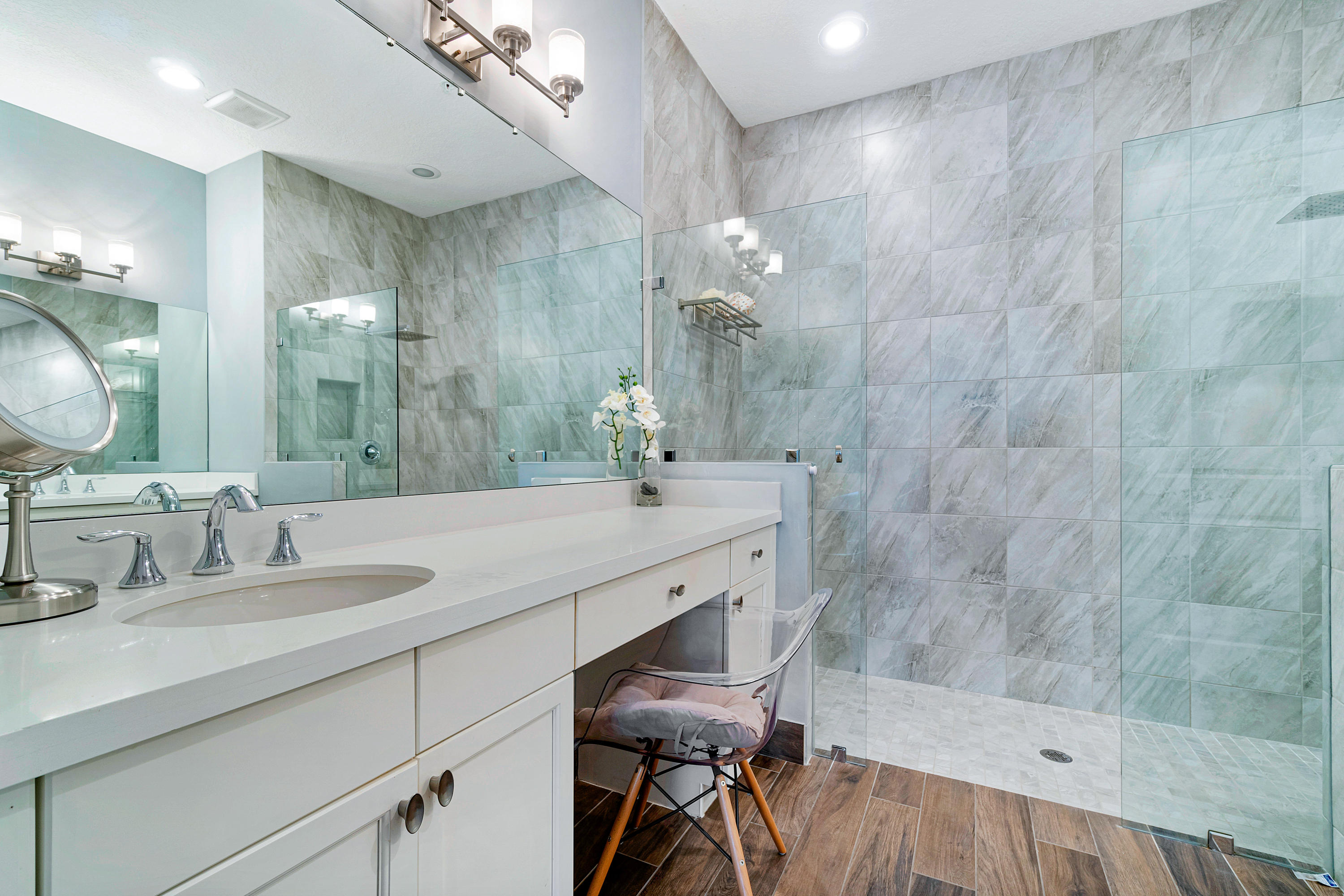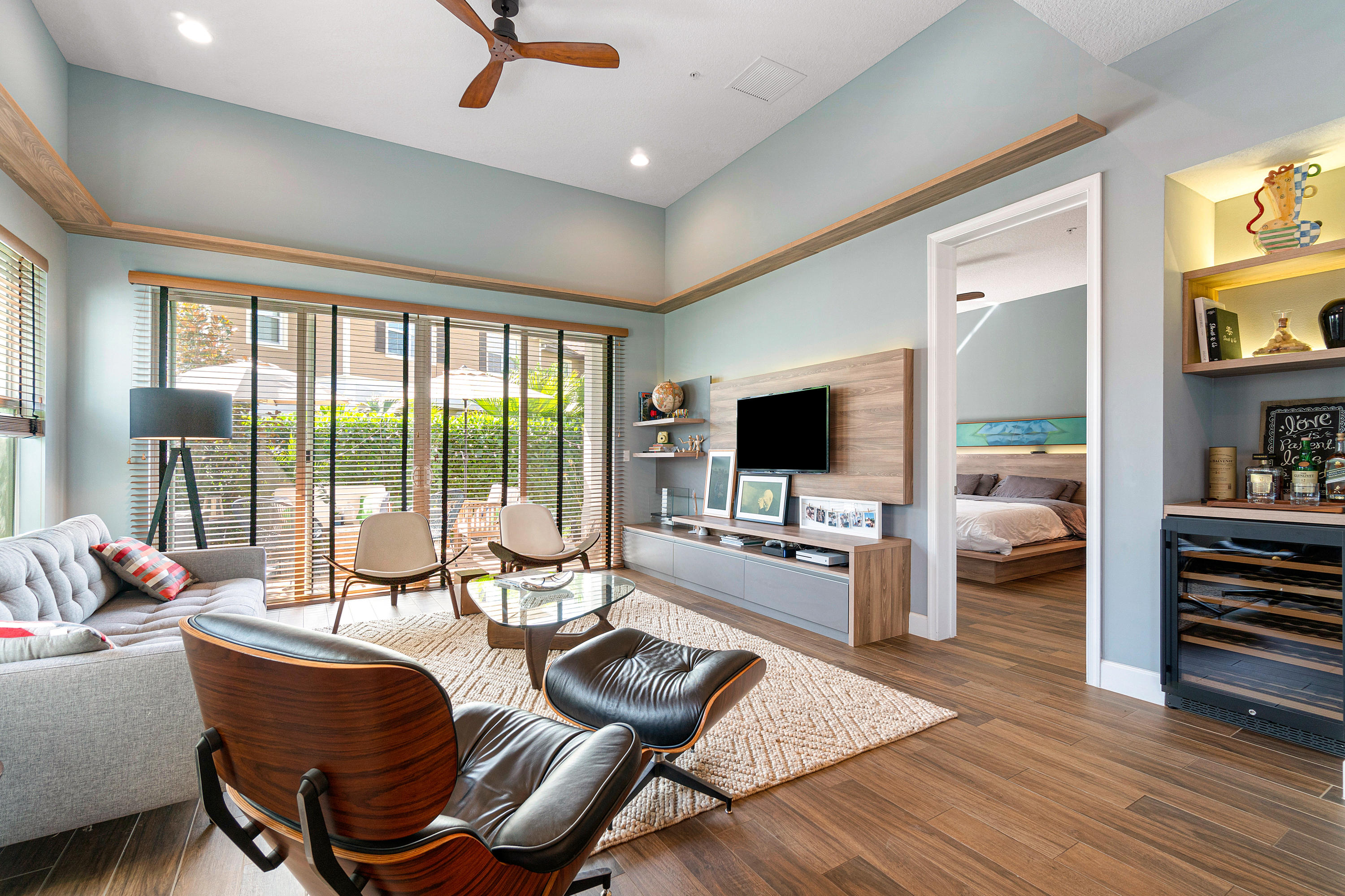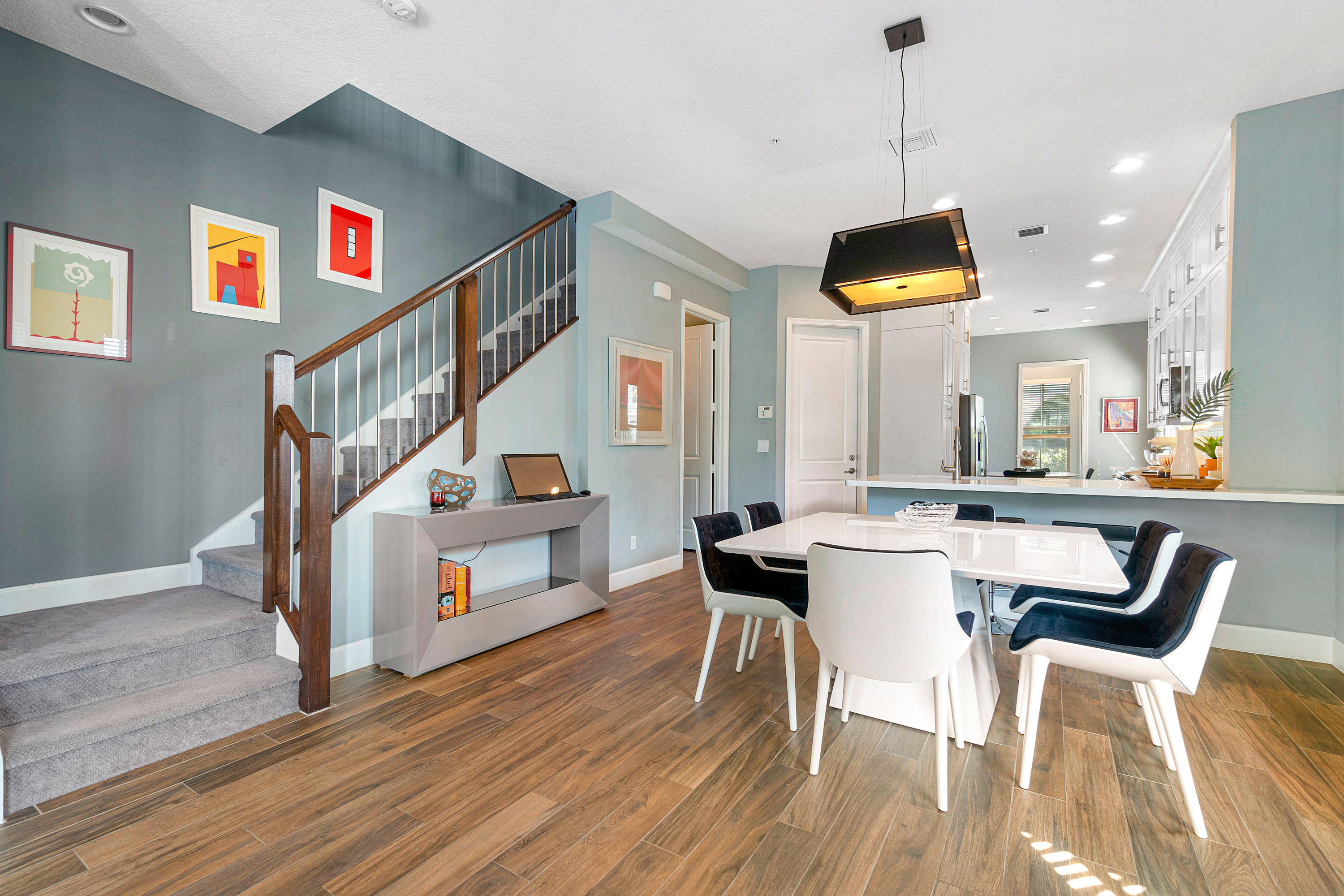 Beautiful designer level wave model constructed in 2016 and loaded with high-end builder upgrades and con. This Rare 4 bedroom with a first floor master is situated as a corner unit with endless greenery views. It is situated with a beautiful covered patio surrounded lush landscaping and tropical trees which provides great privacy amongst neighbors. This unit was loaded with tasteful upgrades such as upgraded flooring, quarts countertops in kitchen and bathrooms, and wood tile upstairs.
