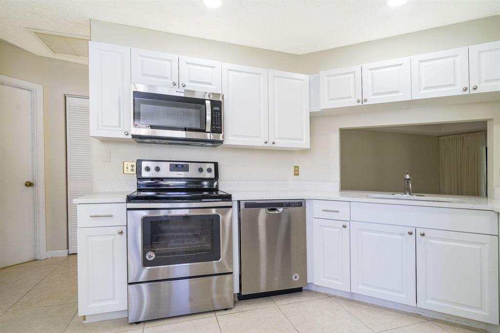 Beautifully updated 3 bedroom and 2 bath home on a quiet cul-de-sac street. New kitchen with stainless appliances and quartz counter tops. Large Livingroom! Updated bathrooms, All porcelain tile floors through out living area. Newer A/C, accordion shutters through out. Plus enclosed Florida room perfect for more living space. Newly painted inside and out. Split bedroom plan, oversized lot(pie shape). Home across the street from recreation area with 2 pools, tennis, clubhouse, walking trails. Maintenance fee includes; lawncare, lawn pest control, sprinkler system. Move-in condition. Well maintained by owners. This home is a must see!!!