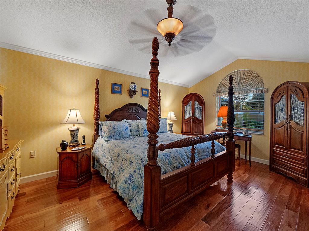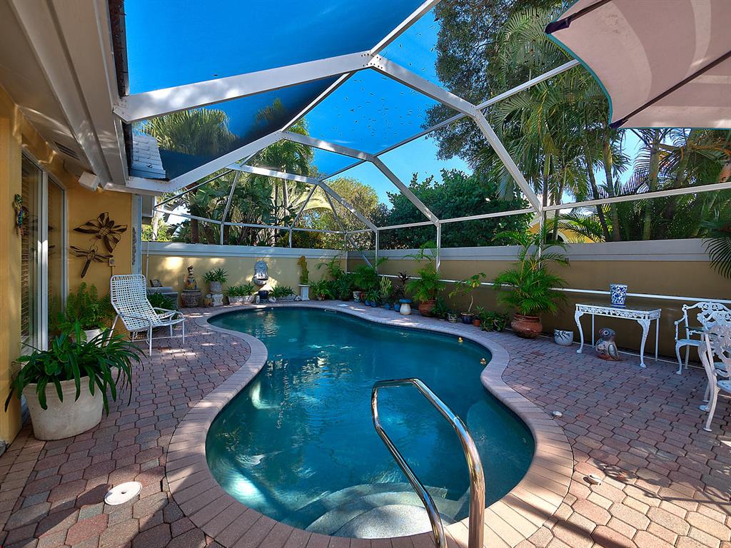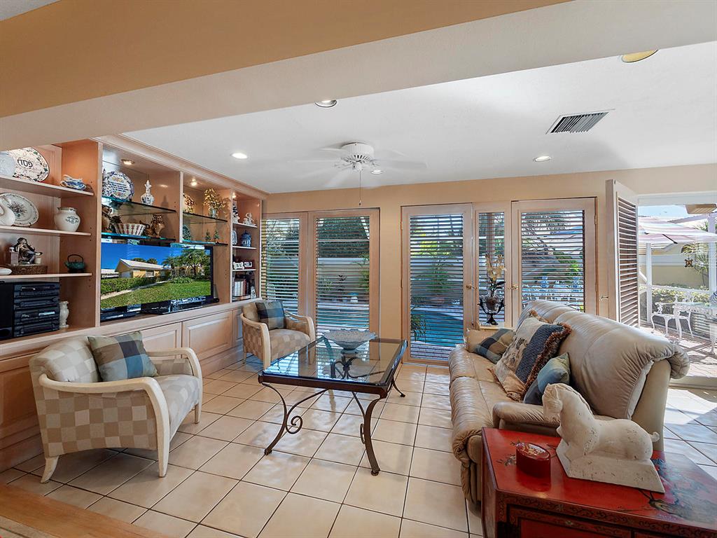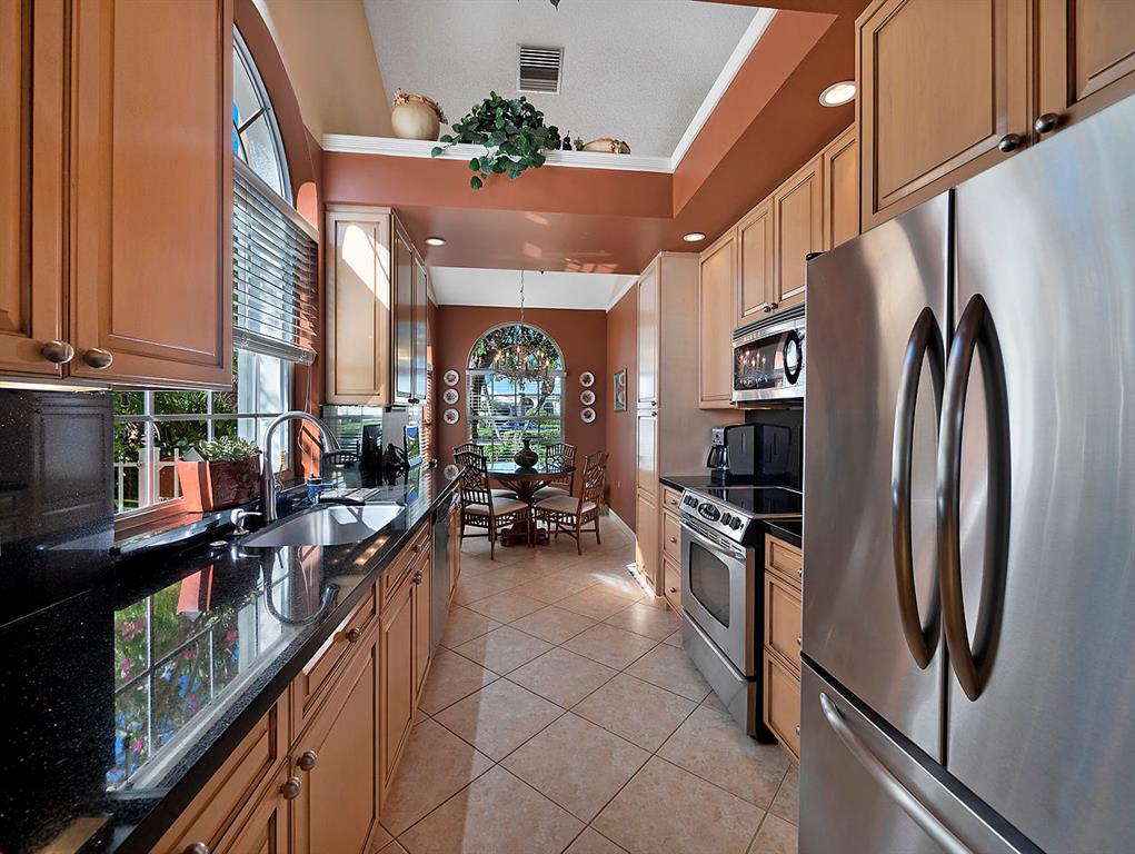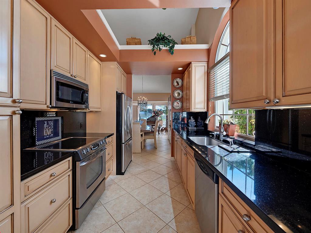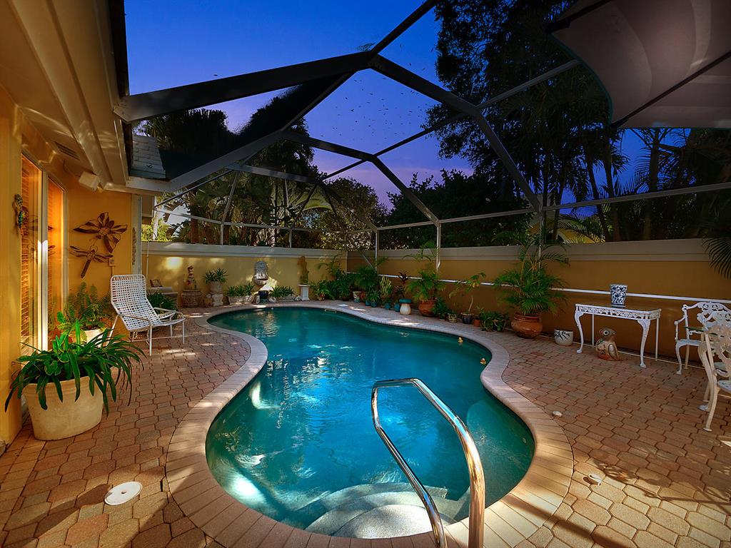 NO MANDATORY CLUB MEMBERSHIP. Enjoy the golf course lifestyle without the dues! Move-in ready, pristine pool home in the desirable gated community of Bear Island with many custom details. New roof in 2010. This is the Saratoga model, the larger of the two models in Bear Island, with 2220 square feet under air. Bright and light 3 BR, 2 with split floor plan, volume ceilings in the living room and a spacious great room that looks onto the pool. Neutral tile floors in the living areas and wood floors in the bedrooms. Custom plantation shutters cover every window and sliding glass doors. Impact sliders. Custom kitchen in 2007 with solid wood cabinets, granite counters and stainless appliances. Custom built-ins and rollouts provide additional easy access. The master suite has