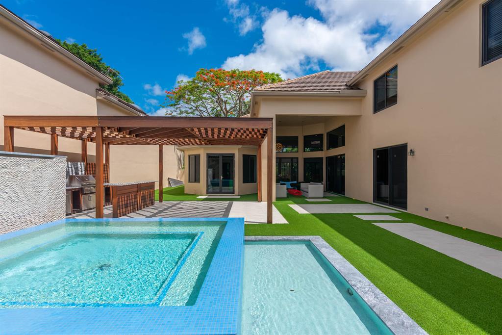 WOW! What a spectacular home! This 6 bedroom 6 bath contemporary remodeled courtyard home is one not to be missed. This decorator ready home has Impact glass throughout, roof 2009, terrazzo tile, & stark carpet. Only the best of the best. The kitchen which is open to the great room and family area has white glass cabinets, & Miele appliances. What a great way to entertain family & friends with this wide open floor plan. You will love the courtyard which contains a large hot tub/mini pool, built in barbecue, stone and astro turf and lush landscaping to add to the Florida lifestyle. Your guests will enjoy the view while staying in their private guest house. What a unique home!! This is one you will not want to miss.