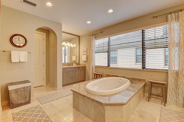 Built in 2016, this stunning Barrington model is a customized 2-story home with 6 bedrooms + office, 6 full baths and 2 half baths. The very large master suite has a separate sitting area and dressing room with spacious walk-in closets. All guest bedrooms are generous sizes, with one guest bedroom downstairs and 4 upstairs. Living spaces are light, bright, and open. The oversized eat-in kitchen, which is open to the family room, has a huge island and is upgraded with all Wolf appliances, including gas range and double ovens, and a Sub-Zero fridge. Outside is a tranquil, private patio with open & covered areas and a heated resort-style pool with spa.