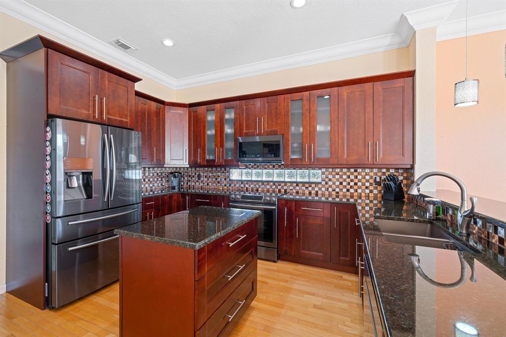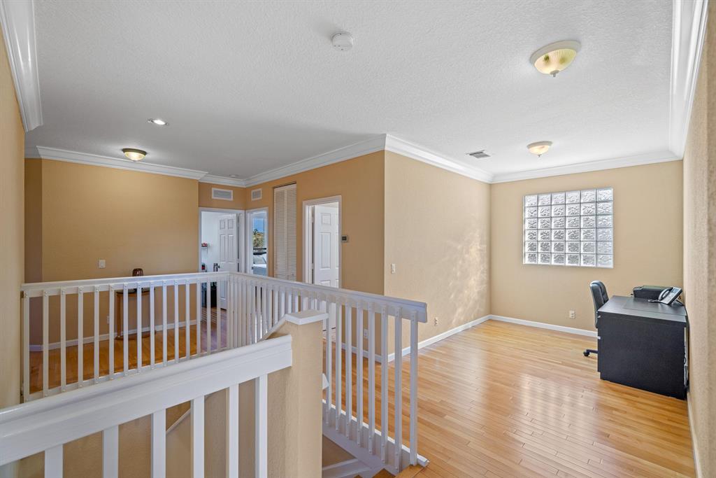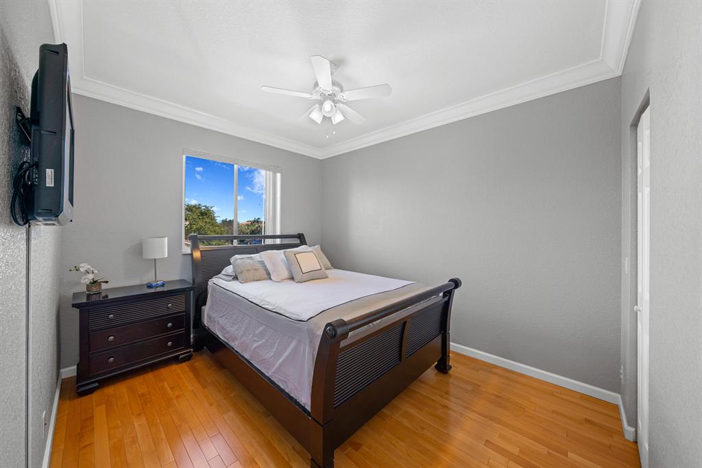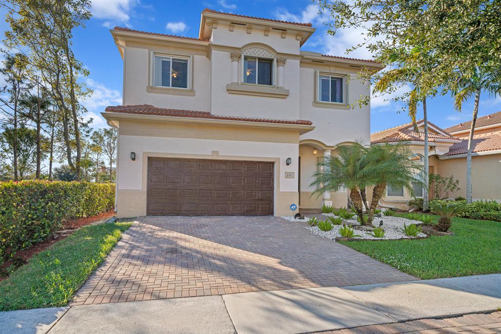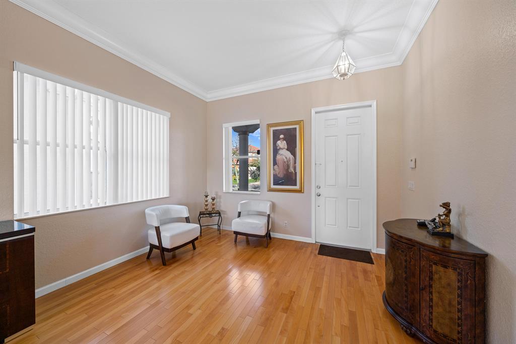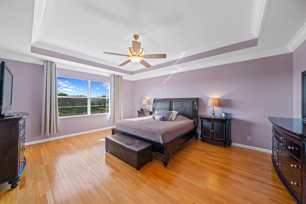 This stunning lake view home in Terracina is a must see! It has all the upgrades. Hardwood floors throughout. New kitchen with top of the line stainless steel appliances, 42'' cherry cabinets, granite counter tops, walk in pantry and touch faucet. Over-sized master suite with a pool and lake view. Private his and her master bath, Jacuzzi tub, spa shower with jets, solid wood cabinets and marble counters. All other bathrooms have solid wood cabinets and granite counters. Top of the line Hansgrohe plumbing and fixtures in all baths. Walk in closets and a loft! AC unit and pool heater less than 2 years old. Exterior painted last year. Roof is well maintained. Accordion shutters and mango trees! Nothing to do but move right in! Gated community with manned security and low HOA fees. More...