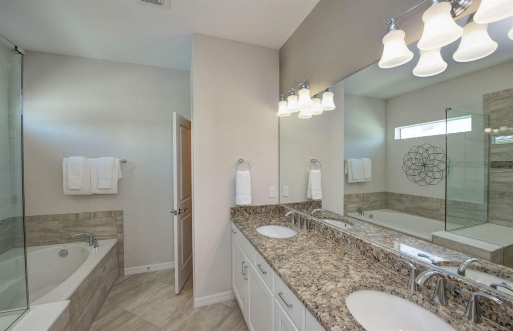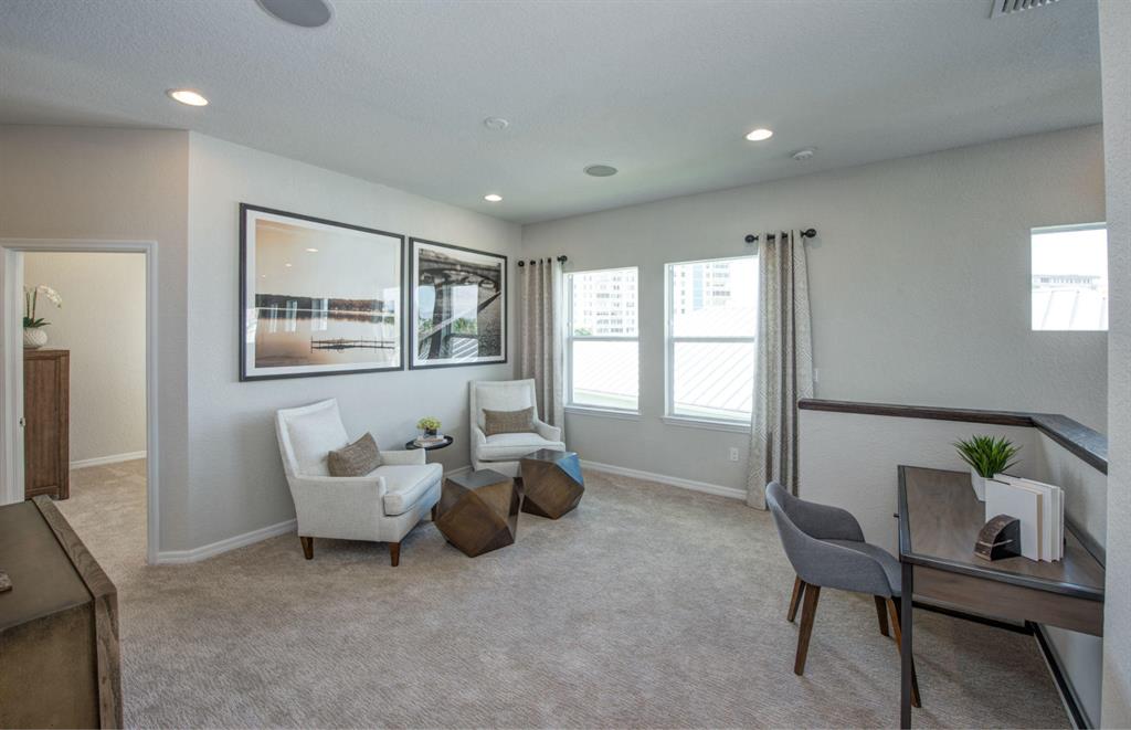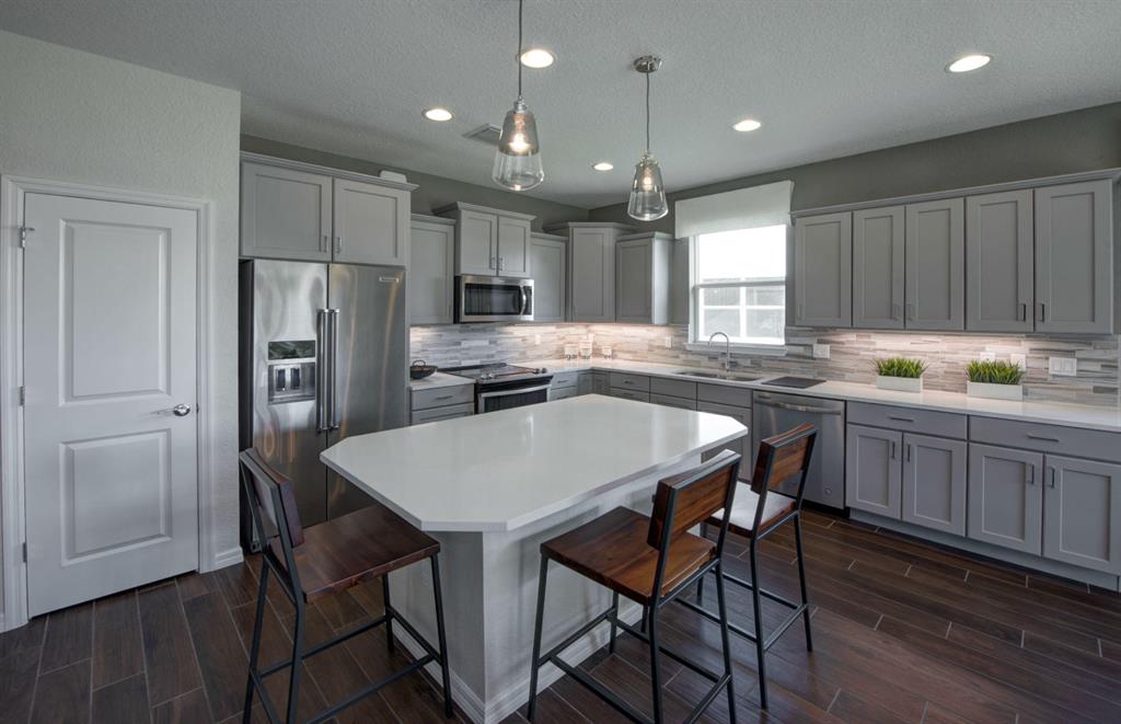 This two-story Alexander home is available for a March move in. This single family home features Eternal Statuario Polished kitchen countertops, White Brellin Deco cabinets throughout, electric stainless steel appliances, and more!