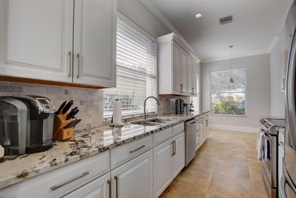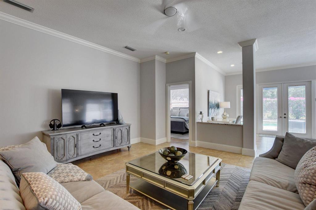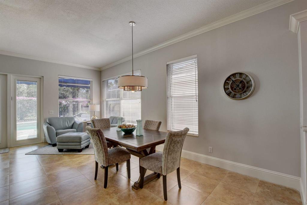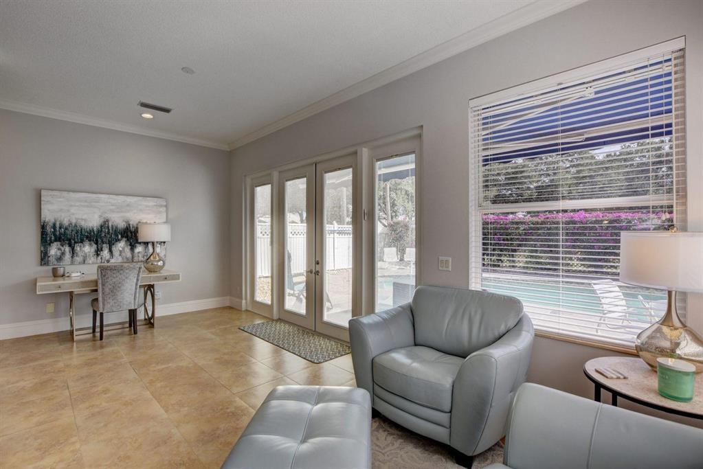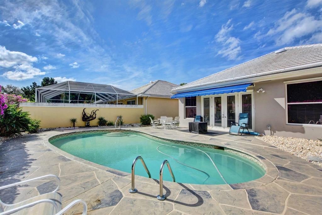 Lovely home with all the bells and whistles. Roof has been replaced. Custom pool with paver decking in a private setting.Kitchen has been redone, the two bathrooms; newer appliances, granite counters, cabinets and fixtures.Master bedroom closets have been remodeled and barn doors replace the original doors. Master and guest bath have frameless shower doors; the master has a special vanity-new flooring--everything replaced in the last two years.Crown molding in the living room, den, kitchen and halls ; large tile flooring thruout the house, except the bathrooms which have lovely wood looking tile floors.This is a golf course community without a mandatory membership. Close to downtown, Kravis Centre and Palm Beach. Solar heating for pool as well as inside the home. Move-in re