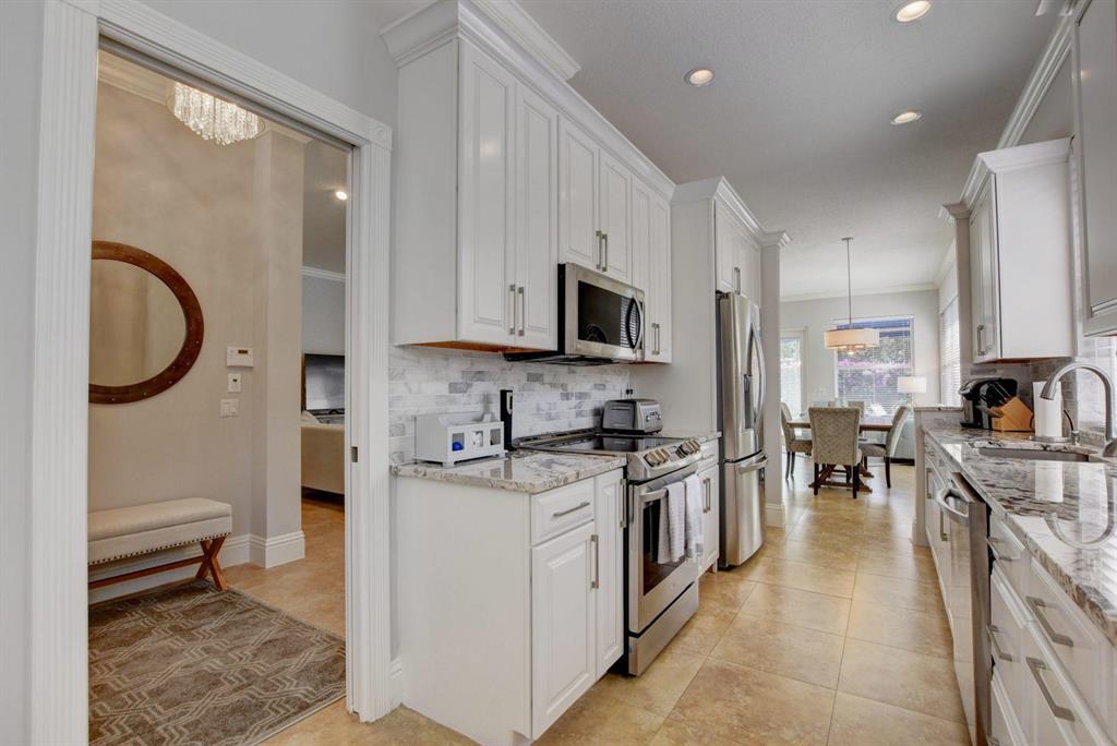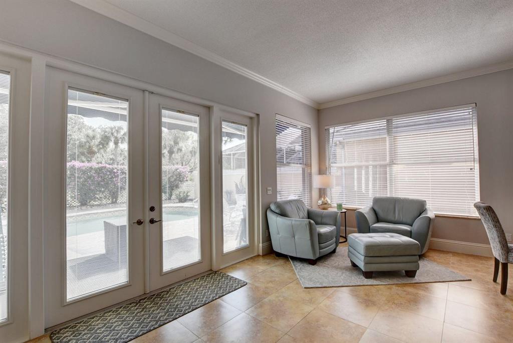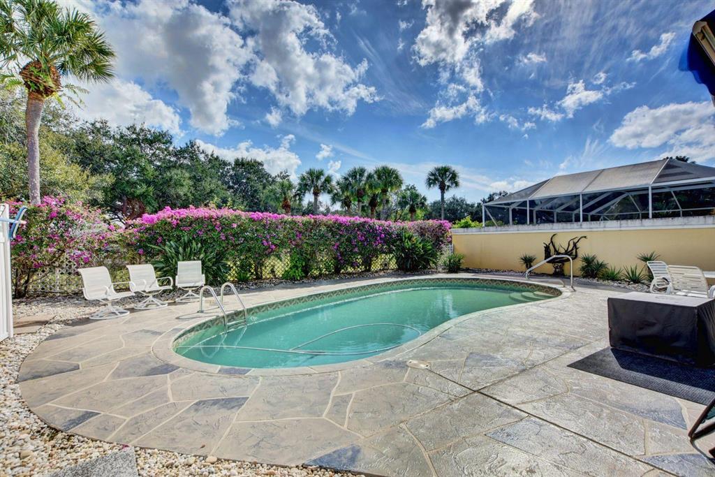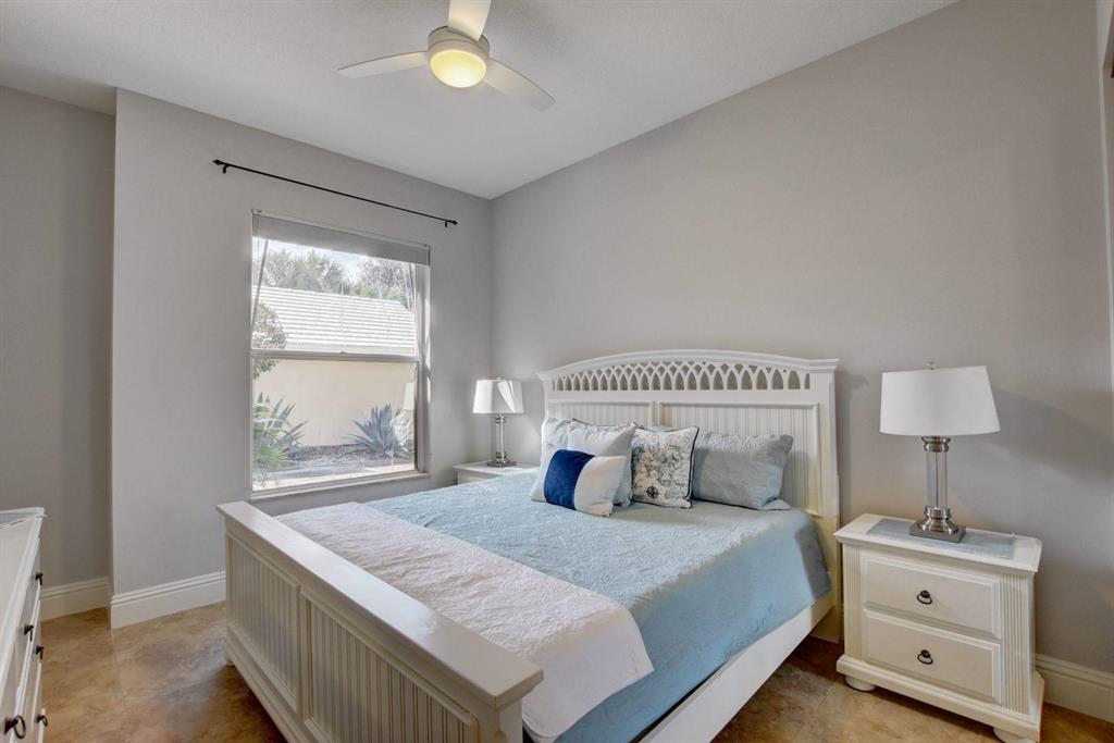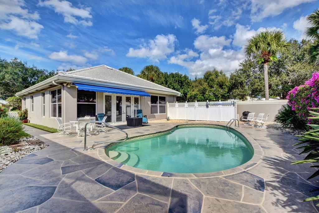 Lovely home with all the bells and whistles. Roof has been replaced. Custom pool with paver decking in a private setting.Kitchen has been redone, the two bathrooms; newer appliances, granite counters, cabinets and fixtures.Master bedroom closets have been remodeled and barn doors replace the original doors. Master and guest bath have frameless shower doors; the master has a special vanity-new flooring--everything replaced in the last two years.Crown molding in the living room, den, kitchen and halls ; large tile flooring thruout the house, except the bathrooms which have lovely wood looking tile floors.This is a golf course community without a mandatory membership. Close to downtown, Kravis Centre and Palm Beach. Solar heating for pool as well as inside the home. Move-in re