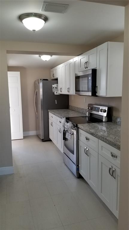 Stunning and completely rehabbed, this property is perfect for that first time home buyer or investor looking for immediate income. This move in ready beauty has a new kitchen with tile floors and brand new stainless steel appliances, completely remodeled master and guest bathrooms, large interior laundry room, new laminate floors throughout, newer roof, central a/c, accordion hurricane shutters, completely fenced in yard and a 2.5 car garage with full power workshop in the rear. The property can be lived in or rented as a full 3/2 or is already dividable into a 2/1 and rented for $1450.00 a month plus the master bedroom/bath has both a front and rear private entrance and can be sealed off to create a separate rent-able living space at $1100.00 a month for a total income of $2550.00.