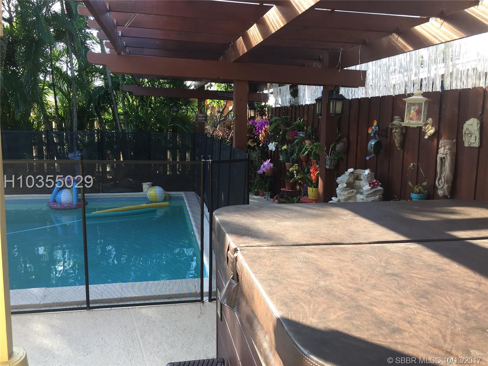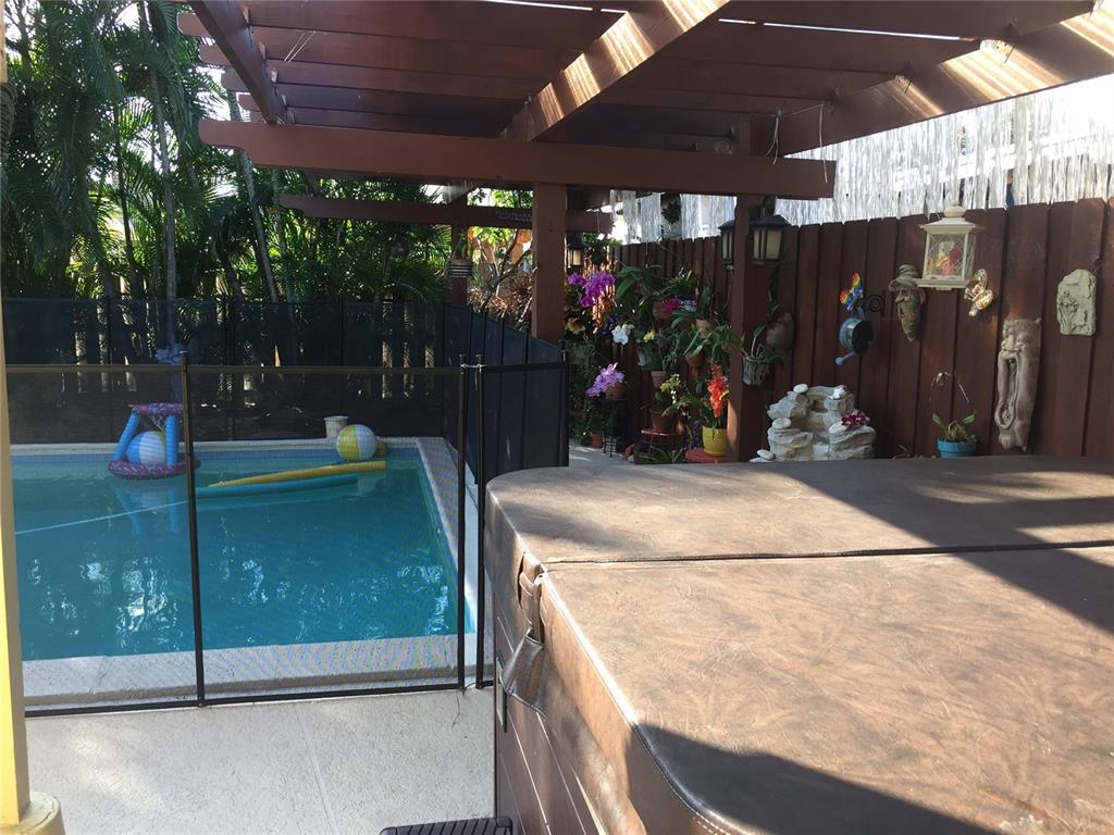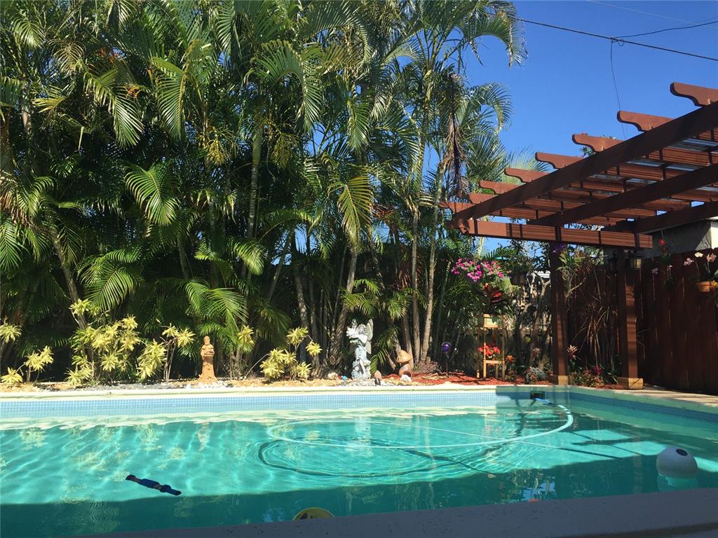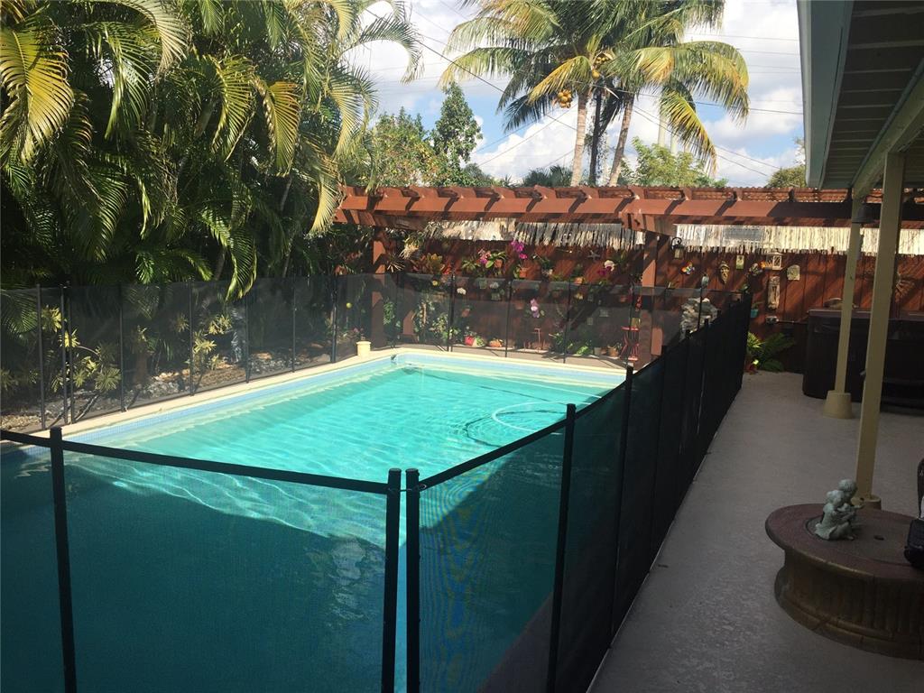 PRICED TO SELL, Quiet Cul-De-Sac pool home is one of the largest in the neighborhood with walk-in closets & new 6 person Jacuzzi! Walk to schools & shopping. Remodeled kitchen, new appliances, large pantry/storage & second refrigerator. Florida room is perfect for a pool table! NEW roof & A/C. Impact windows with vertical blinds, tile & laminate wood floors throughout with base boards & crown molding. Remodeled bathroom with Jacuzzi tub overlooking the large pool & tropical landscaping with Mango & Avocado trees offering plenty of shade and privacy plus a pergola that makes for a great orchid house & natural butterfly garden. A custom built shed, outdoor sink & Jungle gym play set is great for young children all encompassed in your protected fenced in yard.
